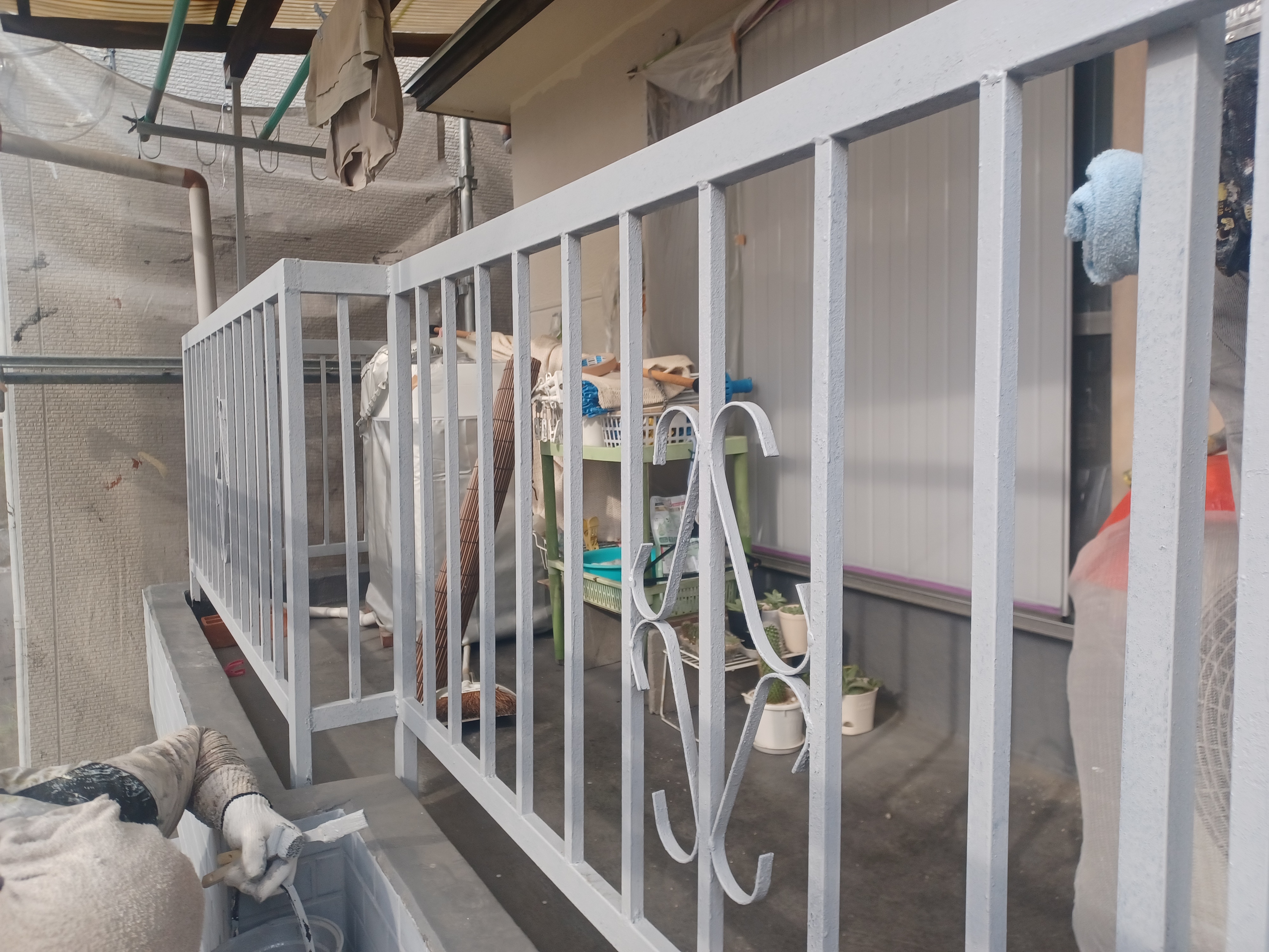 小庇や手すりなどのスチールは全てさび止めを塗布します。