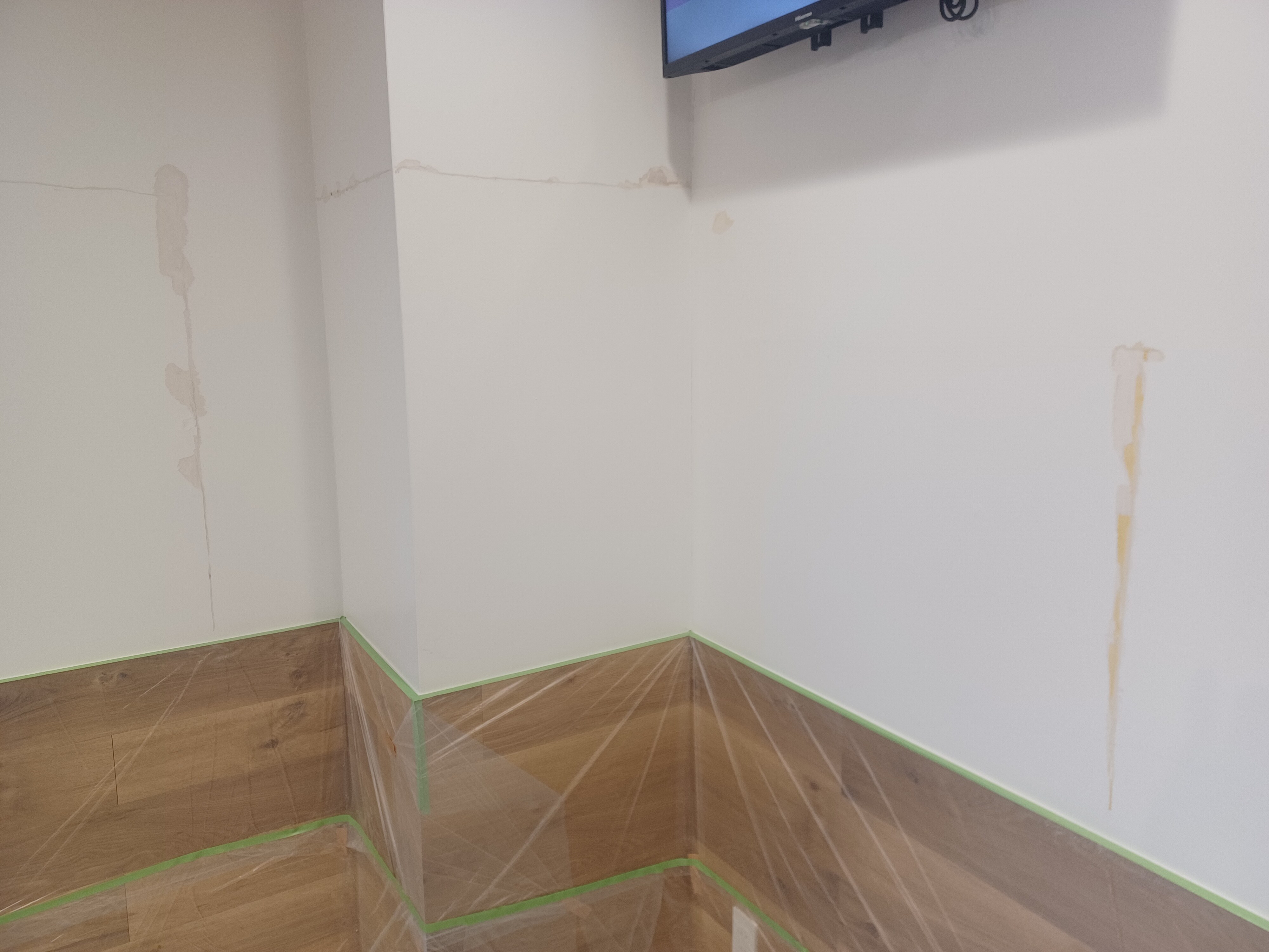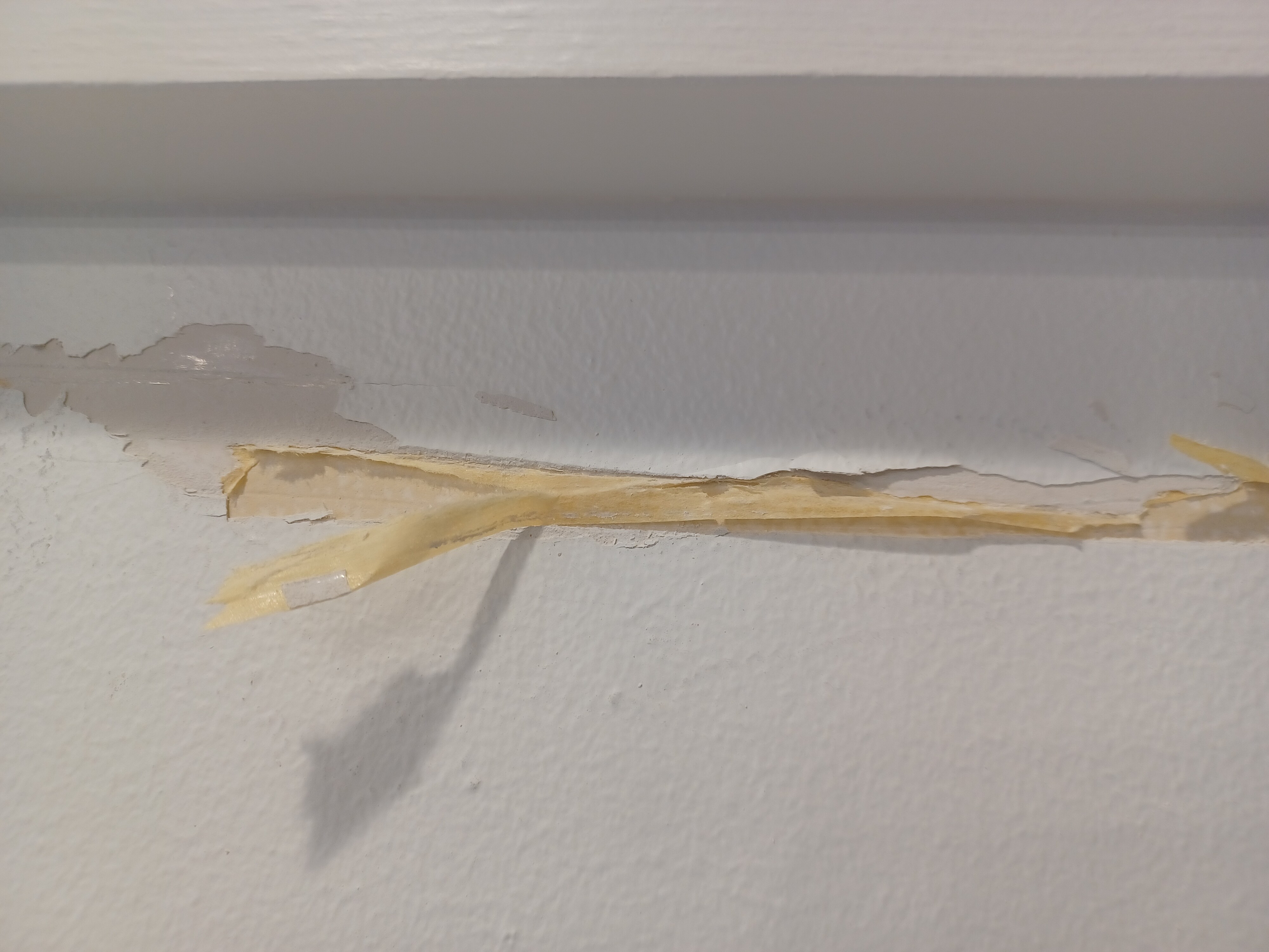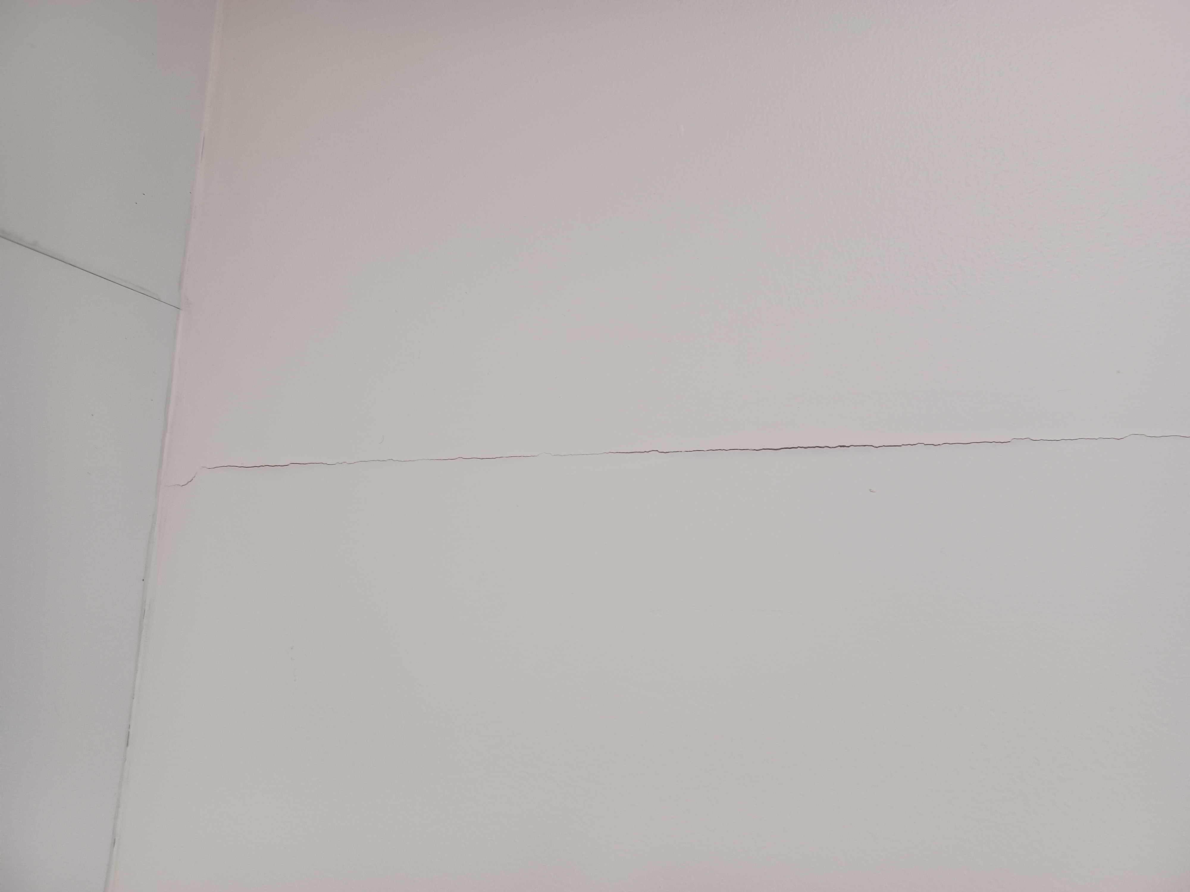 壁はプラスターボード張りで、パテ処理をして塗装をしていると至ってよくある仕上げだったので、どうしてもボードの継ぎ目(ジョイント)部分のパテは動きなどが生じた際に割れるという事も普通にあります。