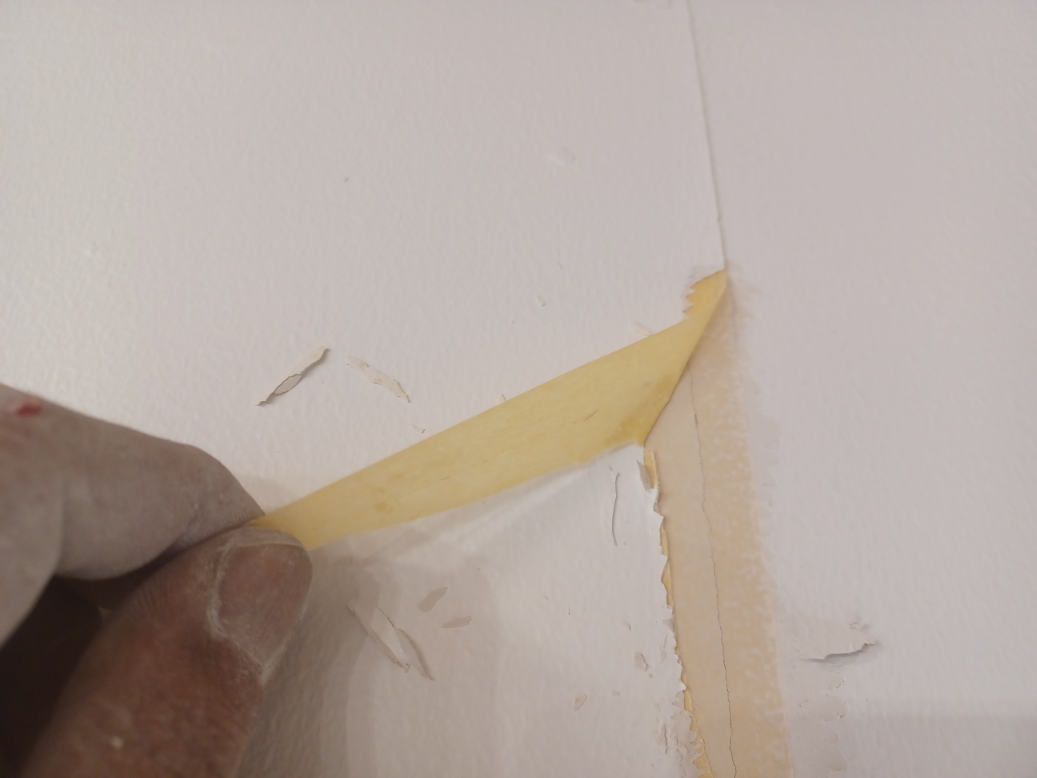 先ずは養生をさせていただいて、割れている部分に貼っているマスキングテープを全て剥がしました。