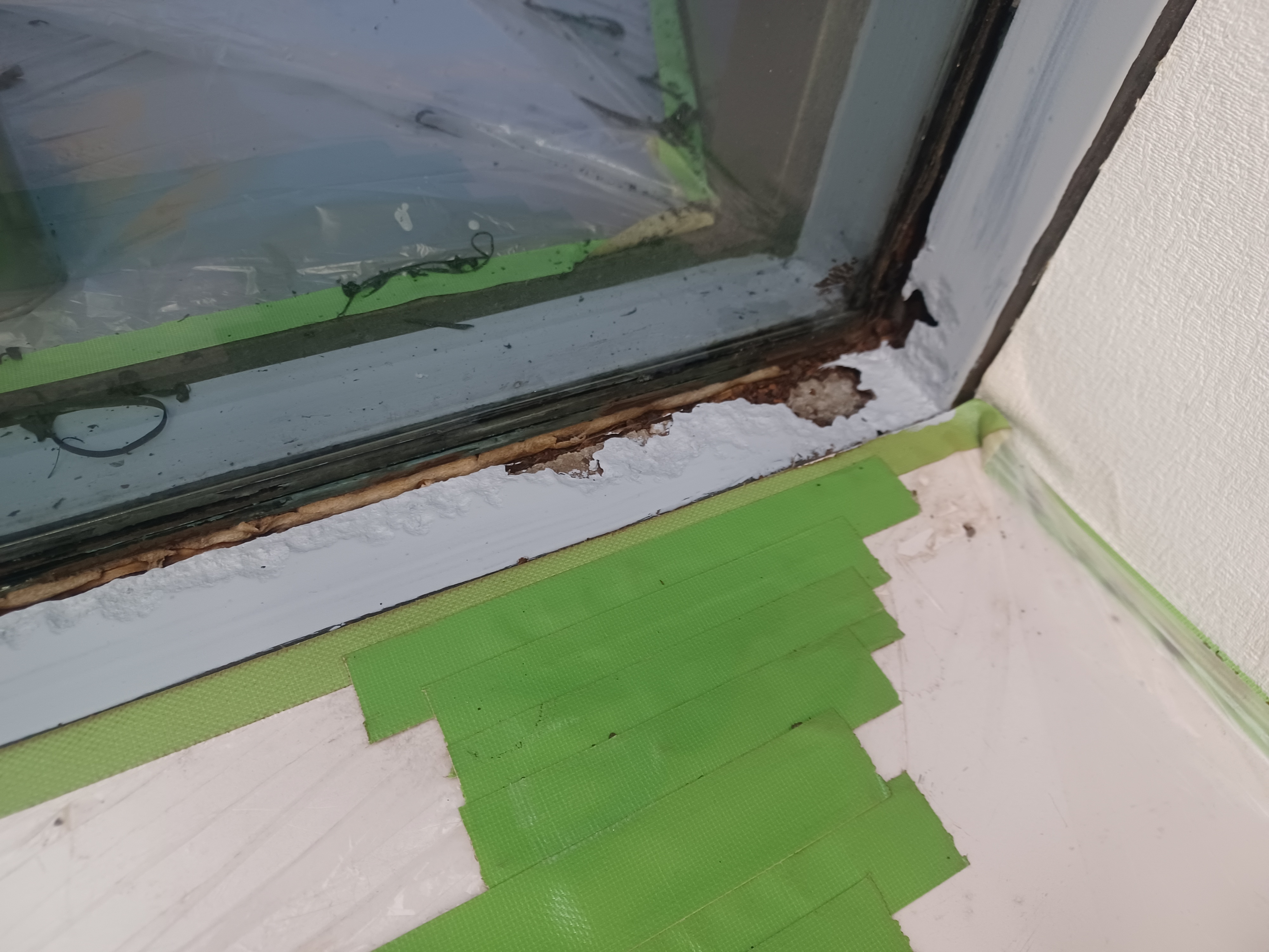 大阪府門真市で腐食のひどいスチール窓枠を修復して塗装させていただきました!