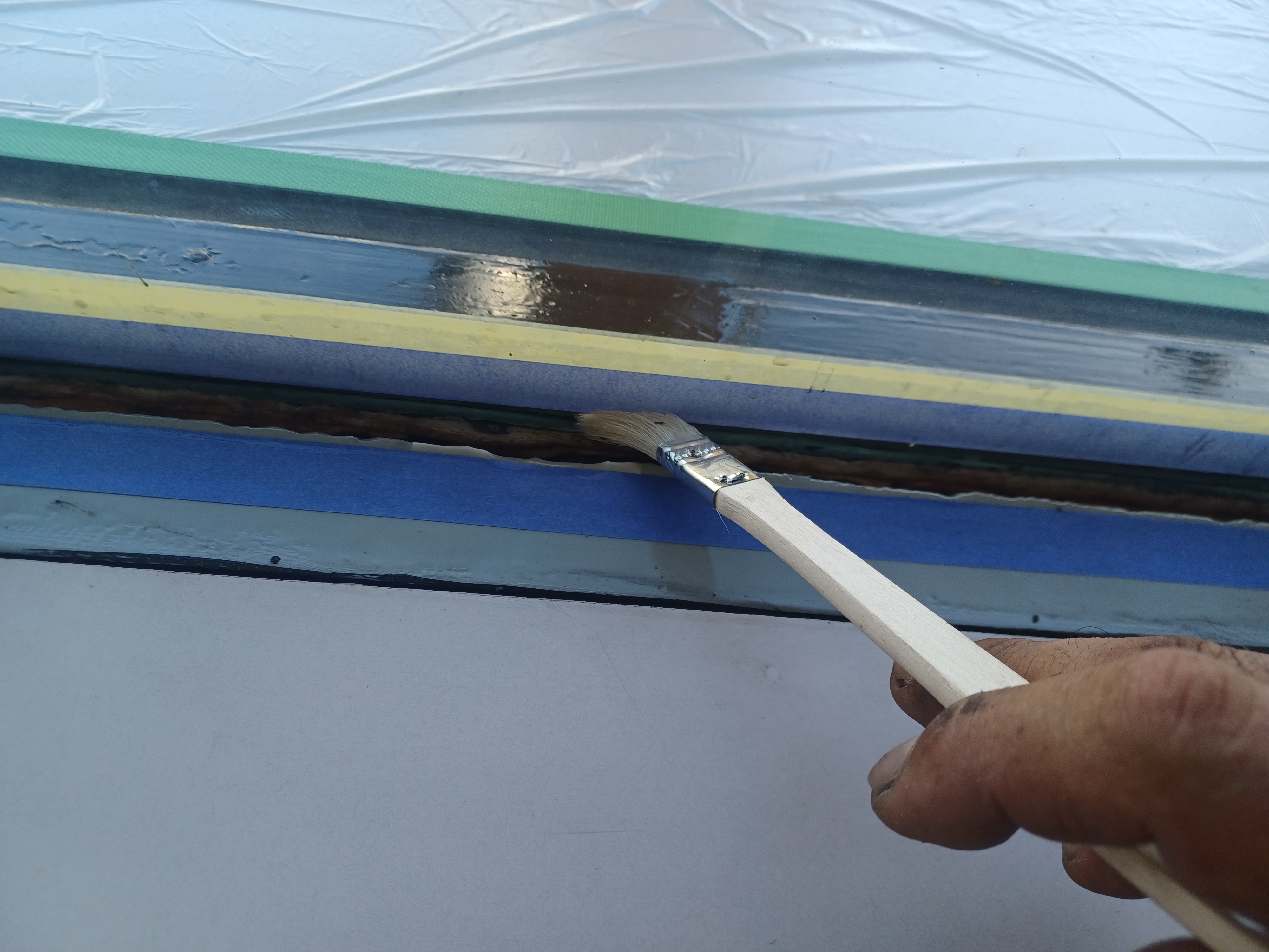 外側も同様で修復後にシールを打ち替えて塗装します。