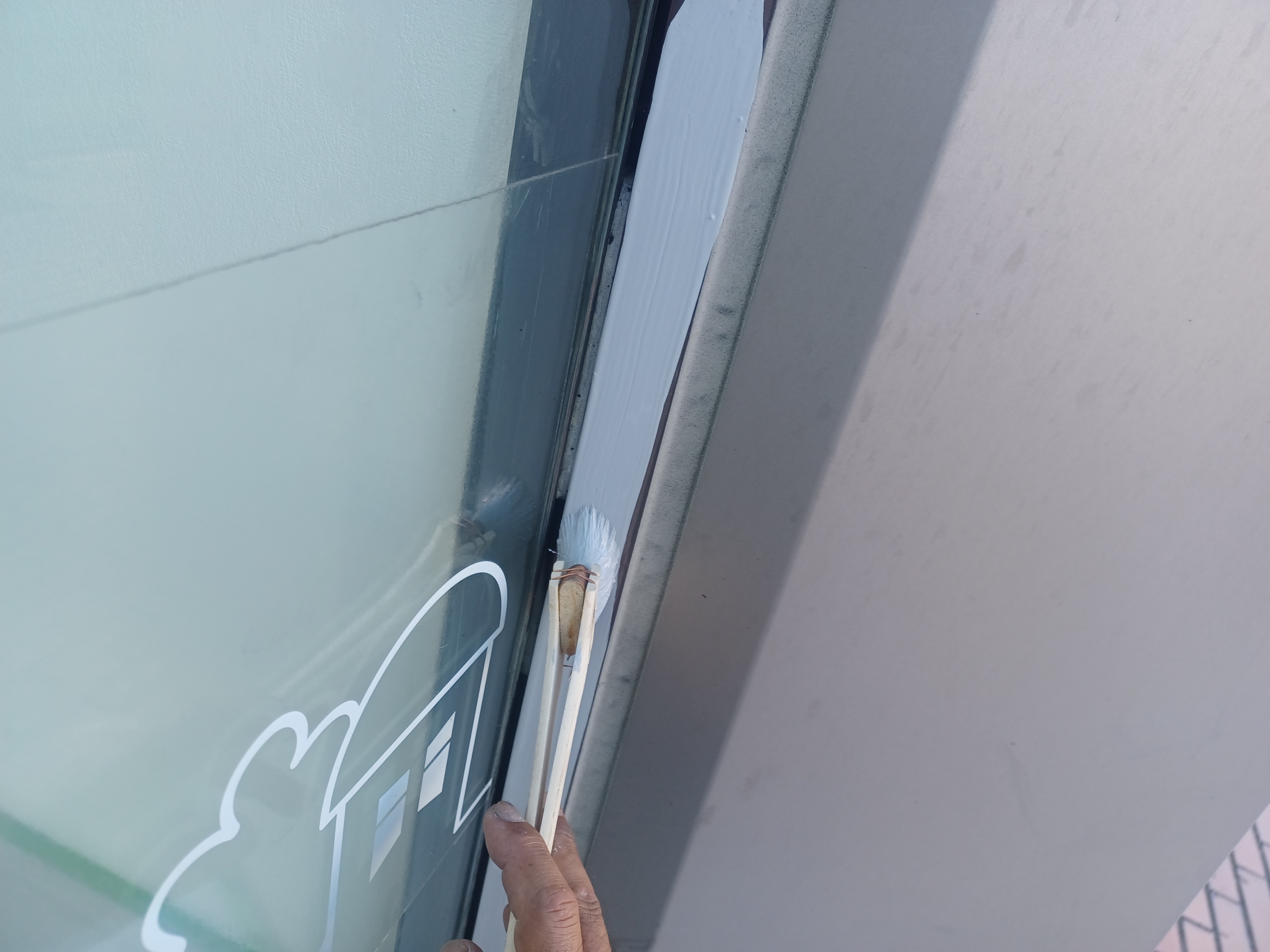 シールはガラスですのでシリコンを打っている事が多いですが、先々の塗り替えの事を考えて変性シリコンを化粧で打ちました。