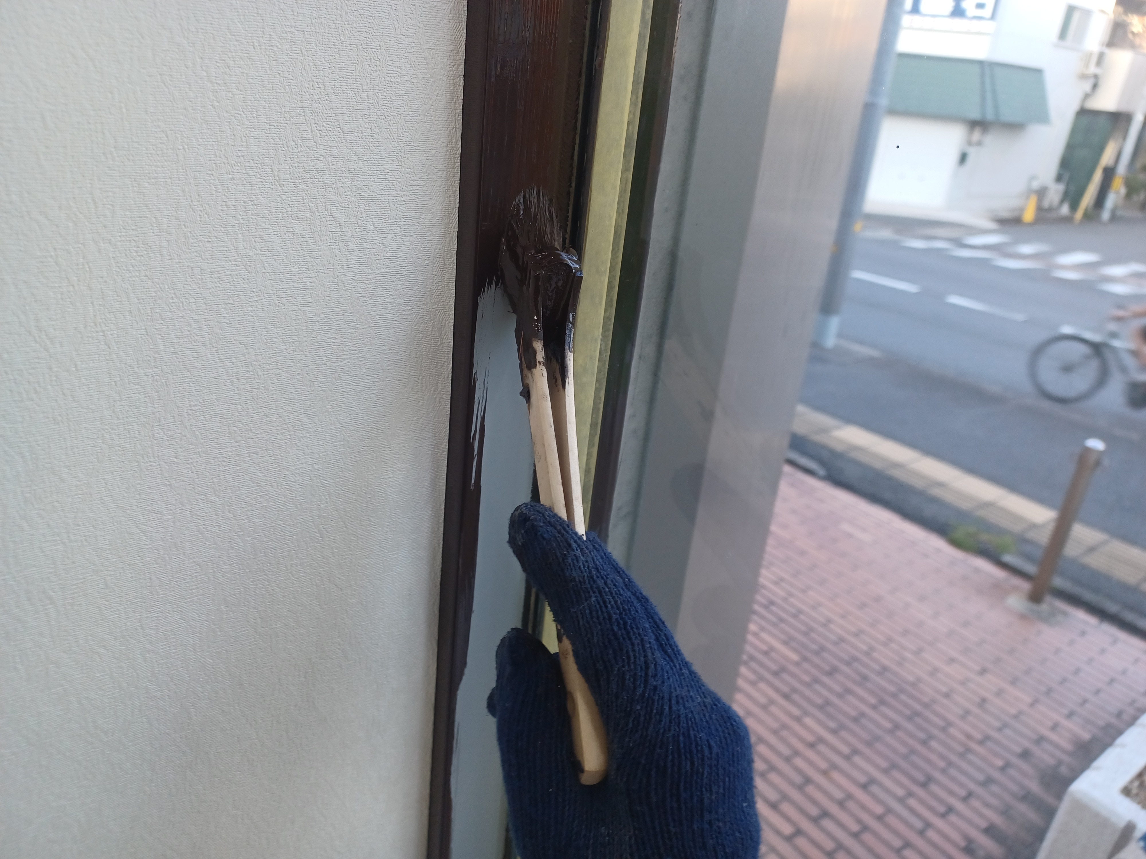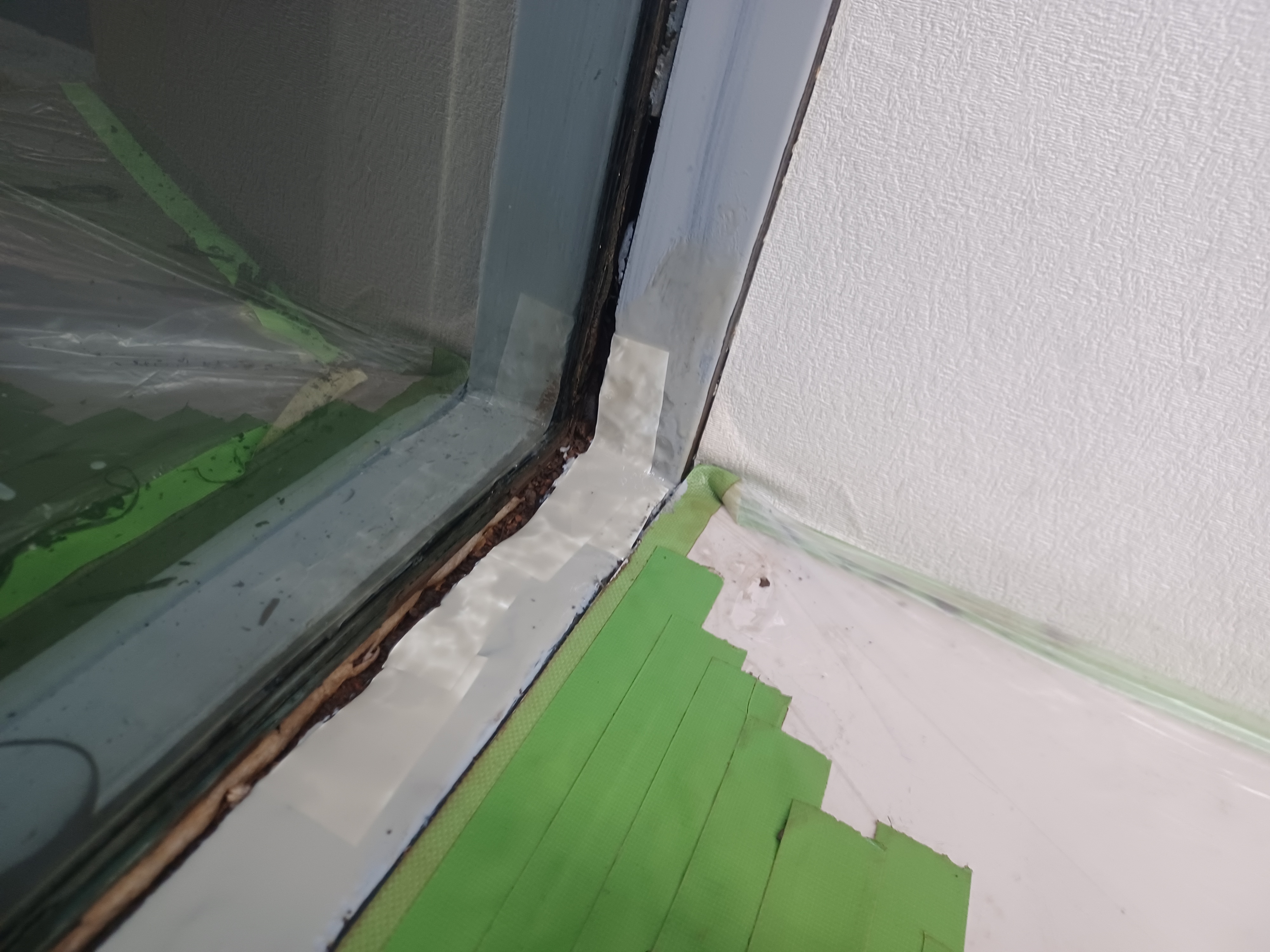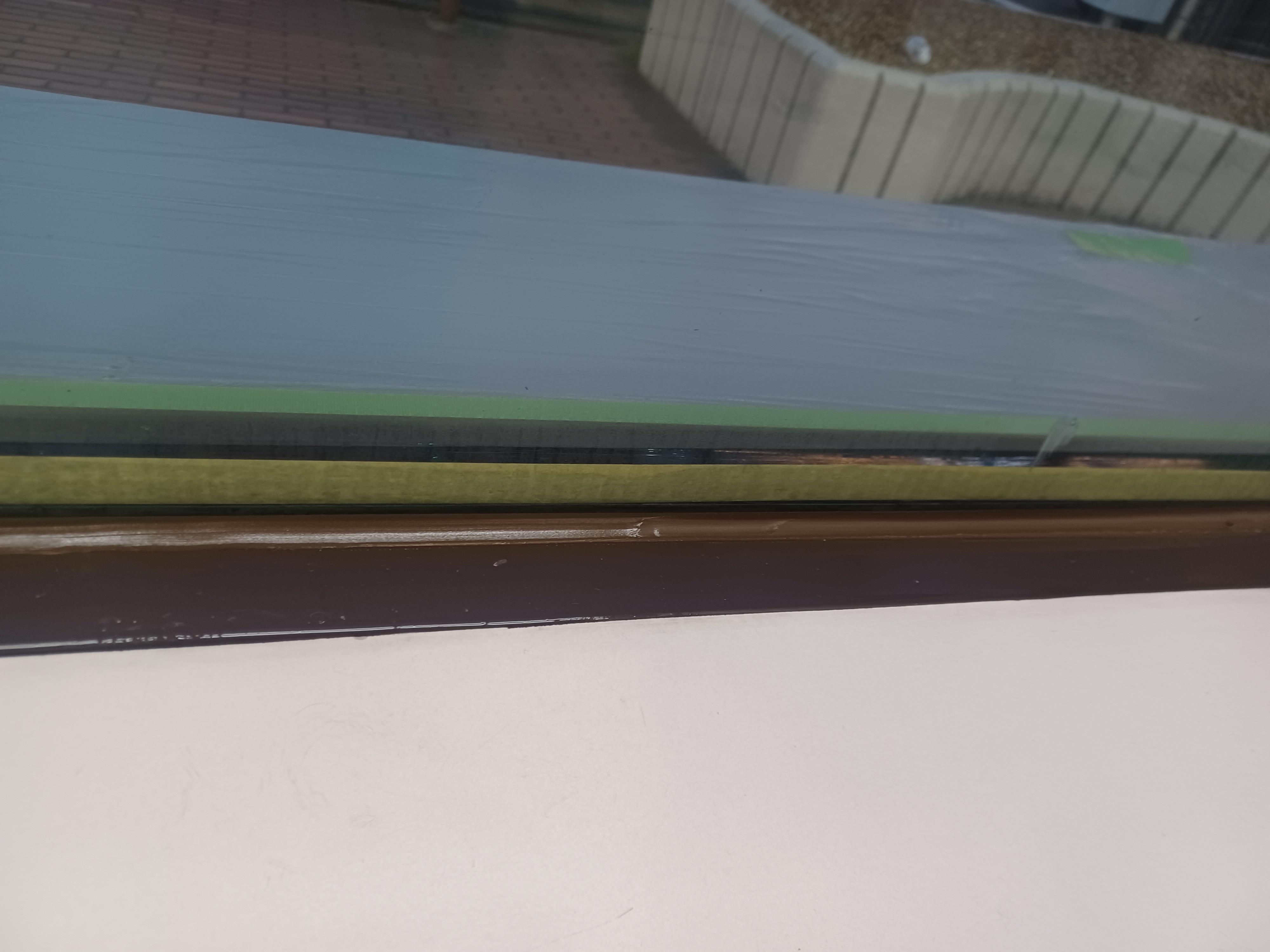 結露で水の溜まる下の部分は化粧でシールを打った後に、上塗りを塗りました。
