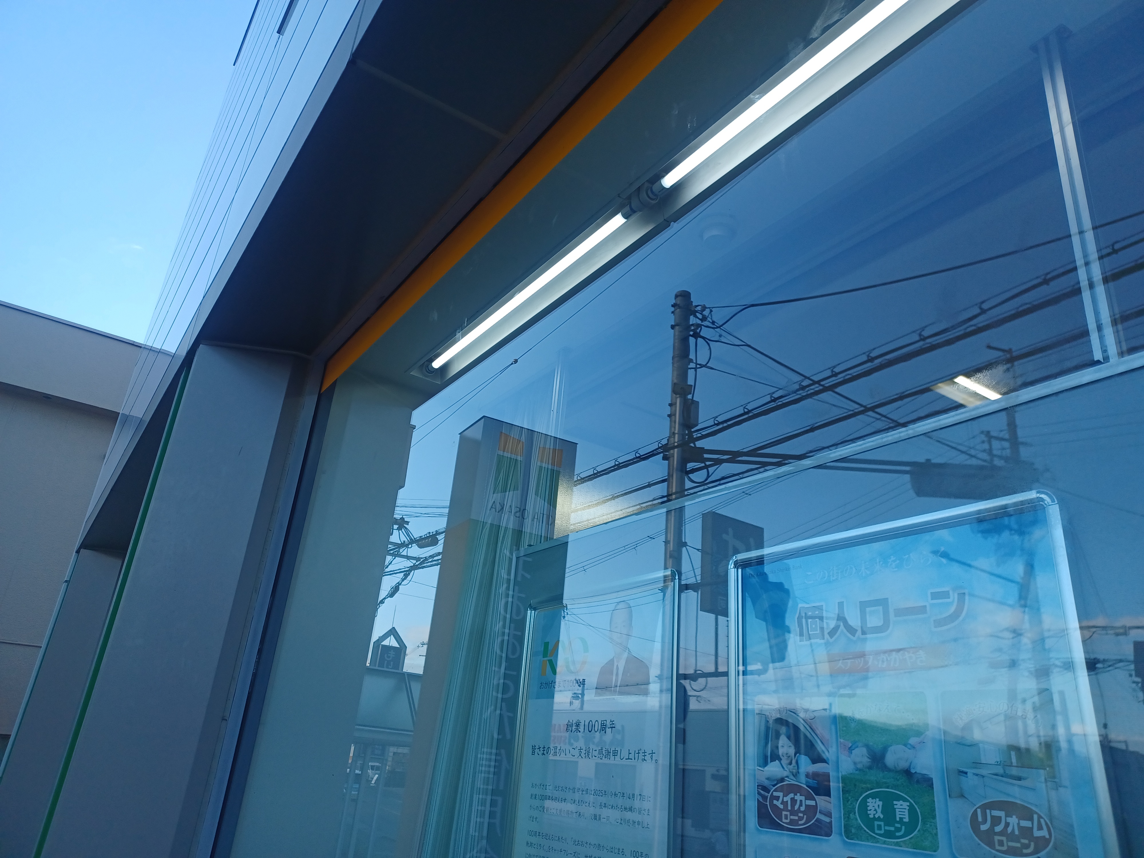 信用金庫様は営業は15時で終了してシャッターは閉まりましたが、それからもお仕事を頑張られていて、その横で塗装をさせていただきましたが、きっと塗料の臭いはきつかった事と思います。