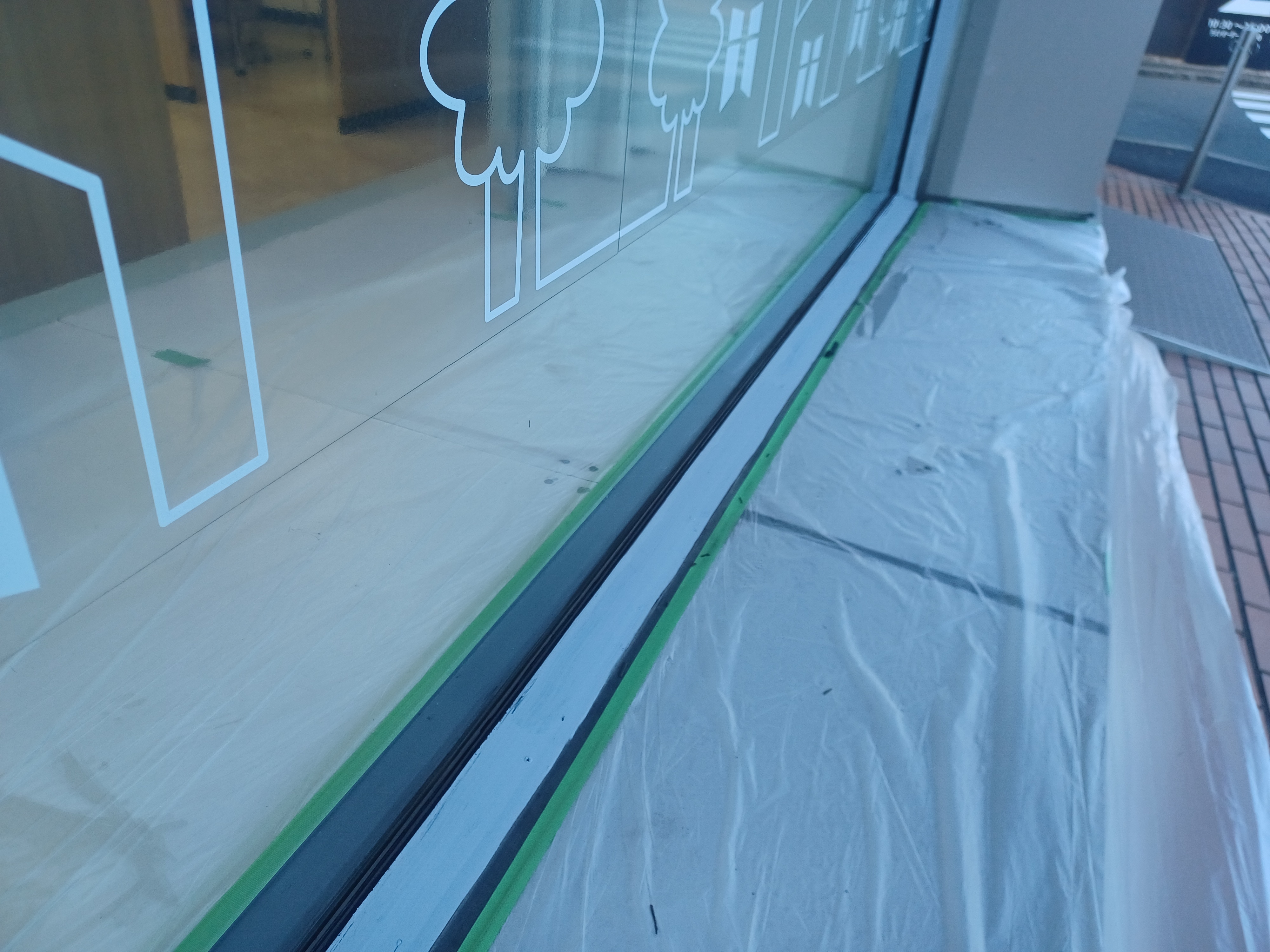 2日目の朝から外側の窓枠にマスキングテープを貼り、シールを打たせていただきました。