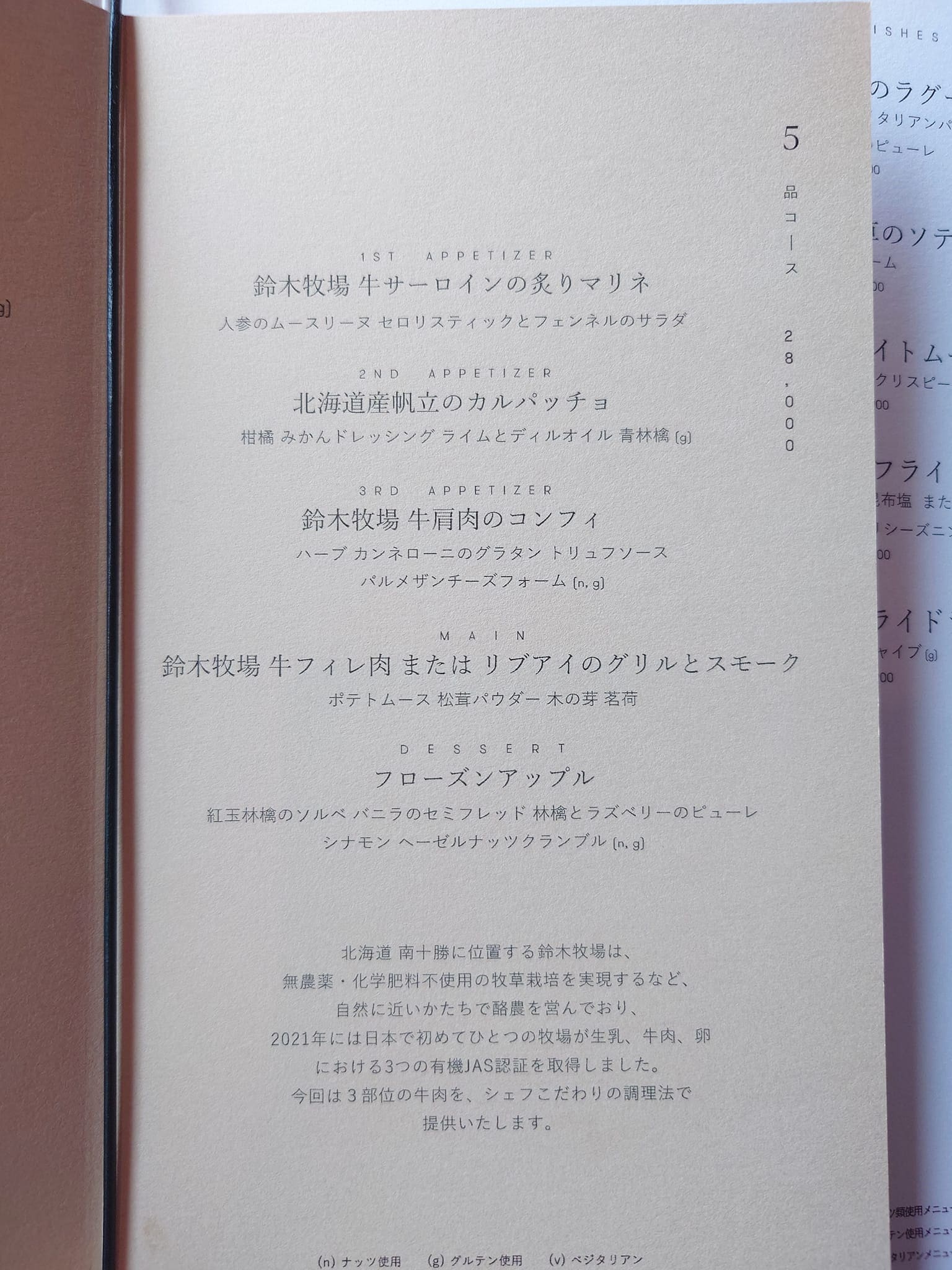 とご縁をいただき、鈴木牧場のオーガニックグラスフェッドビーフの5品コースがスタートしました。
