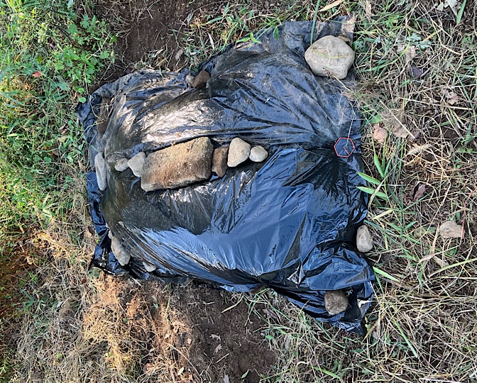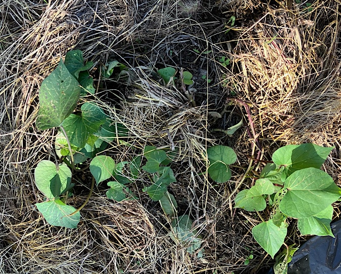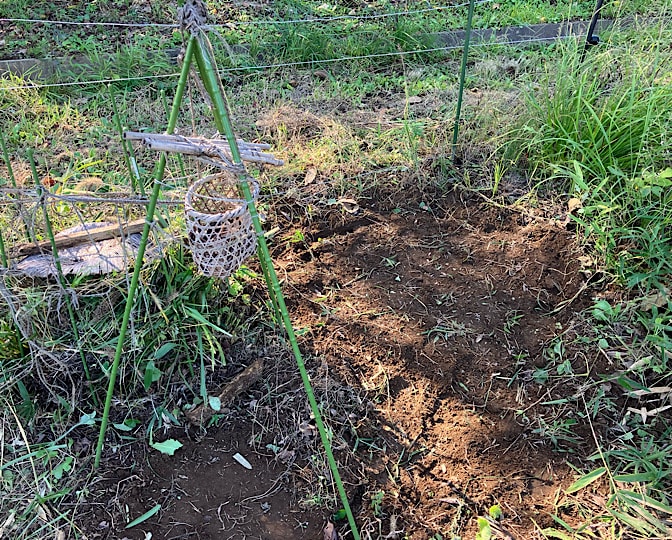 それを鎌でザクっと刈って、鍬でエイヤっと掘っくり返しましてねーー。