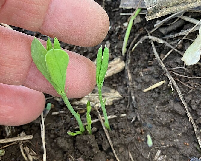 さすがはヘアリーベッチ、力強い芽吹き!!