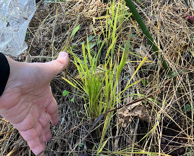 この稲がまだ頑張ってる畝を、堆肥場にします!!(^人^)