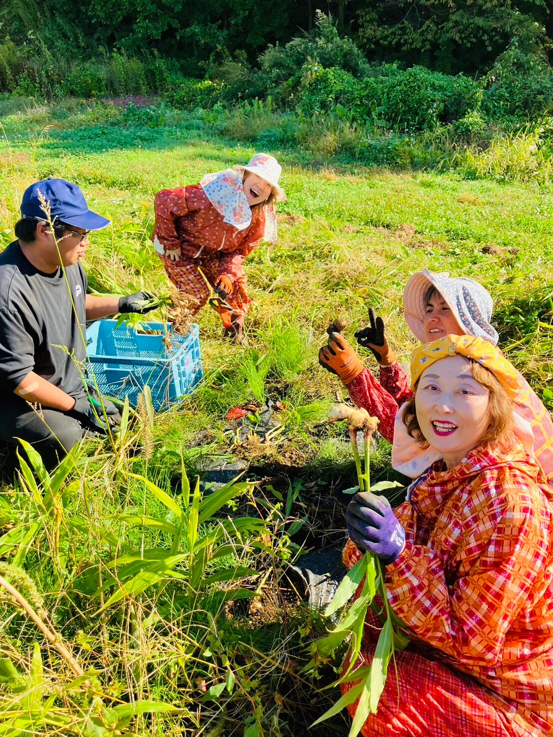 当日の午前中に 収穫体験 しょうがやサツマイモを掘りました