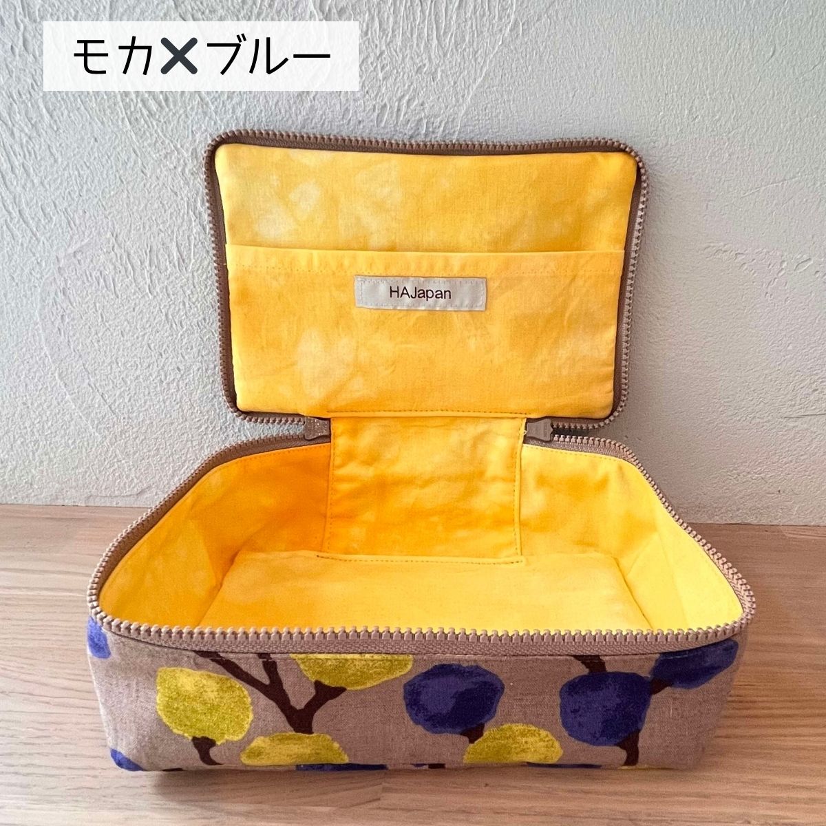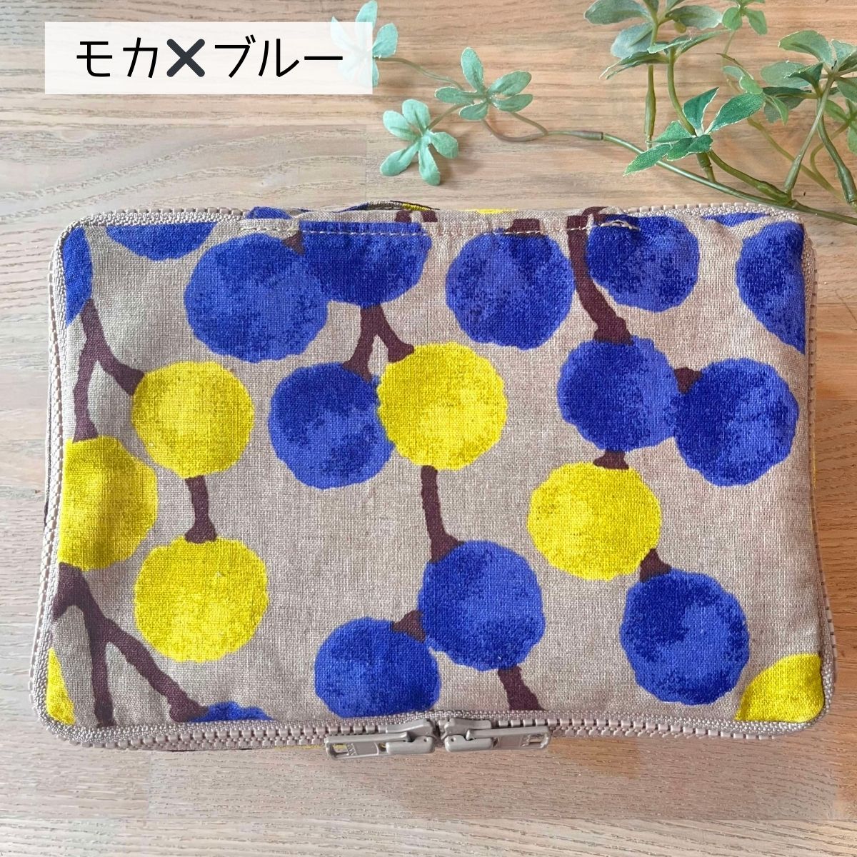 表地はモカ地、そこにブルーの絵柄。