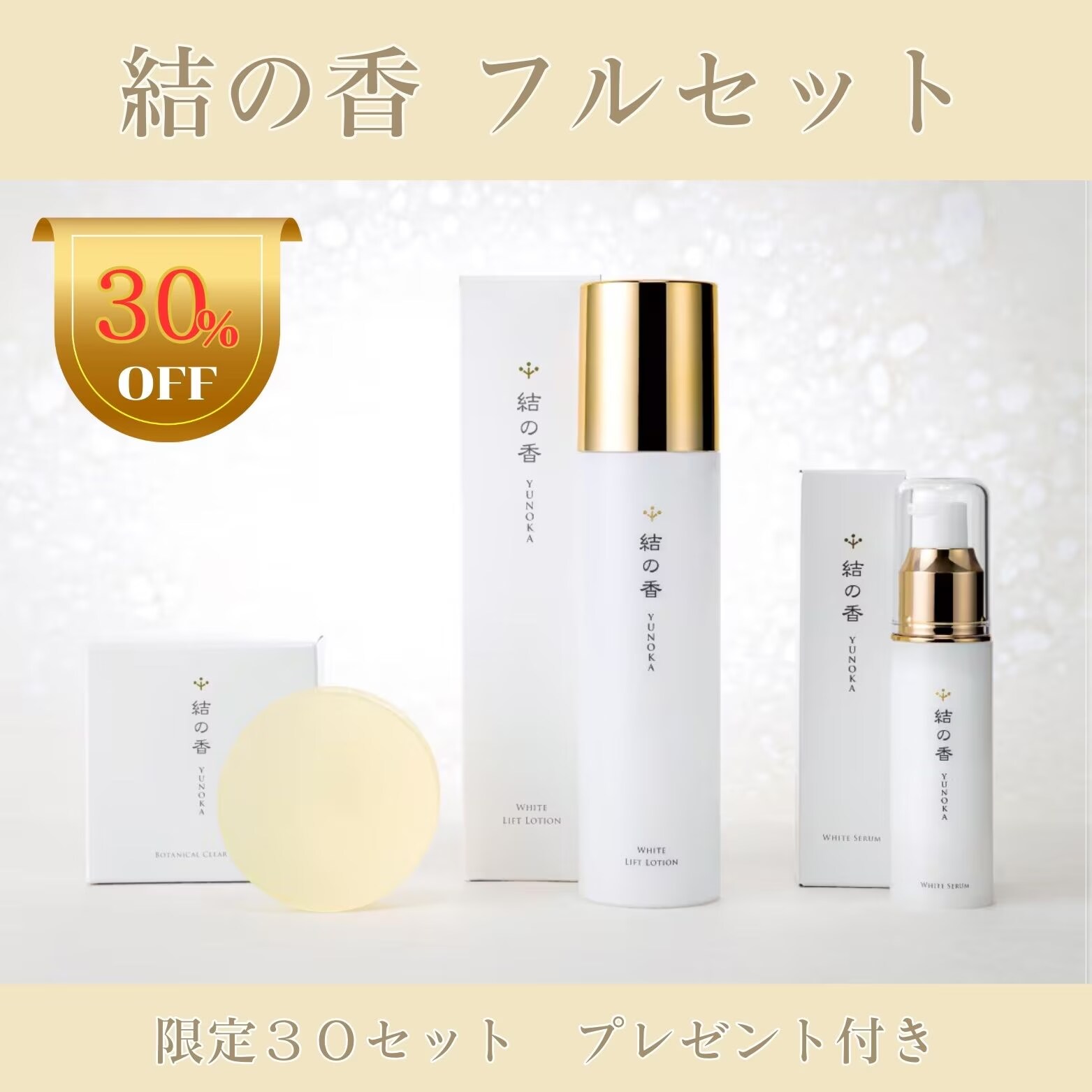 そんな「結の香」の美容液・化粧水・石鹸の3商品が、今だけお得に買えるチャンスです。