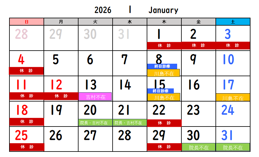 ★ 13日・20日・21日は、𠮷村先生不在です。