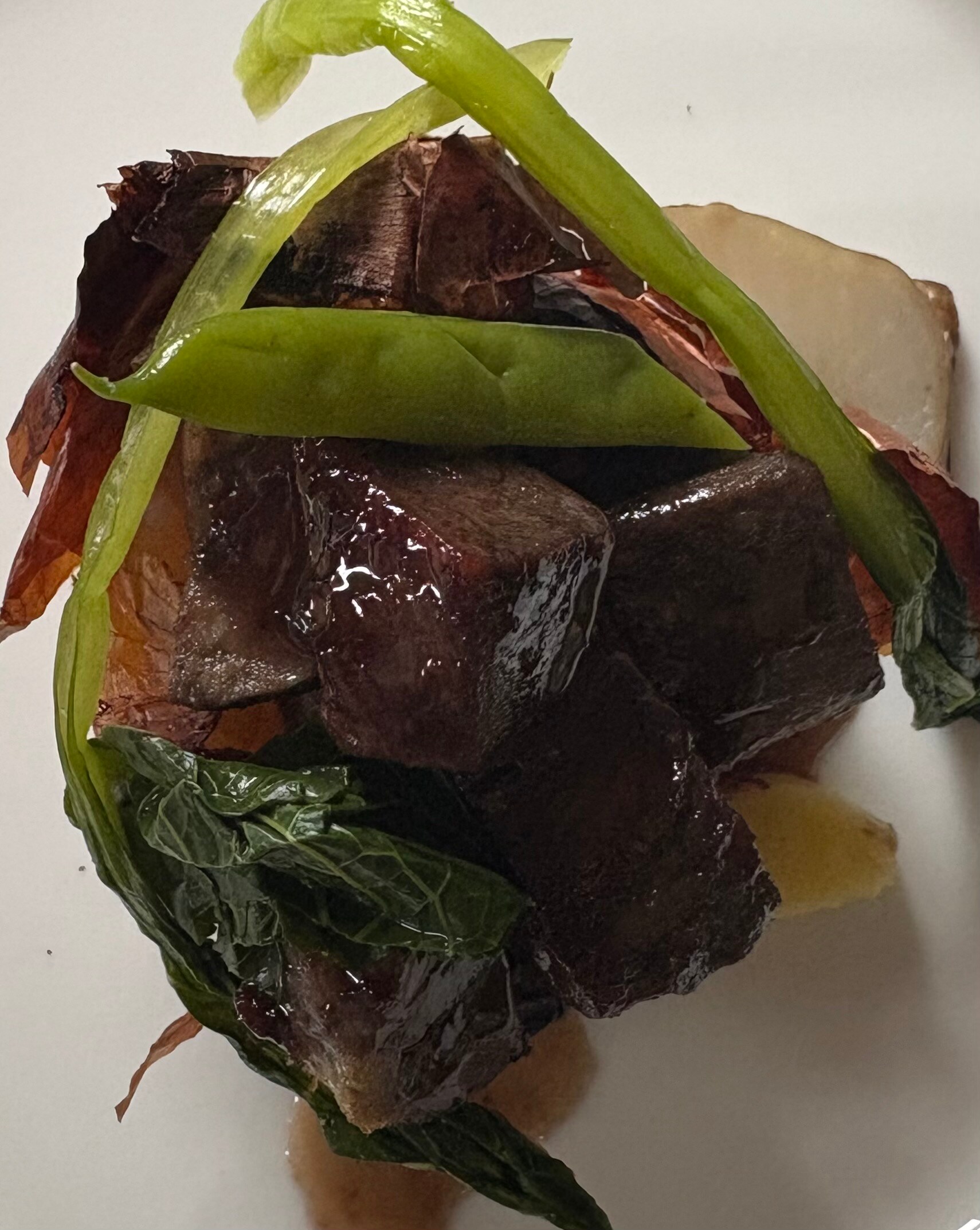 丸ごと玉ねぎを甘みを引き出すため、皮ごとじっくりローストしたものに程よい大きさにカットした牛タンのソテーをマッチングさせました