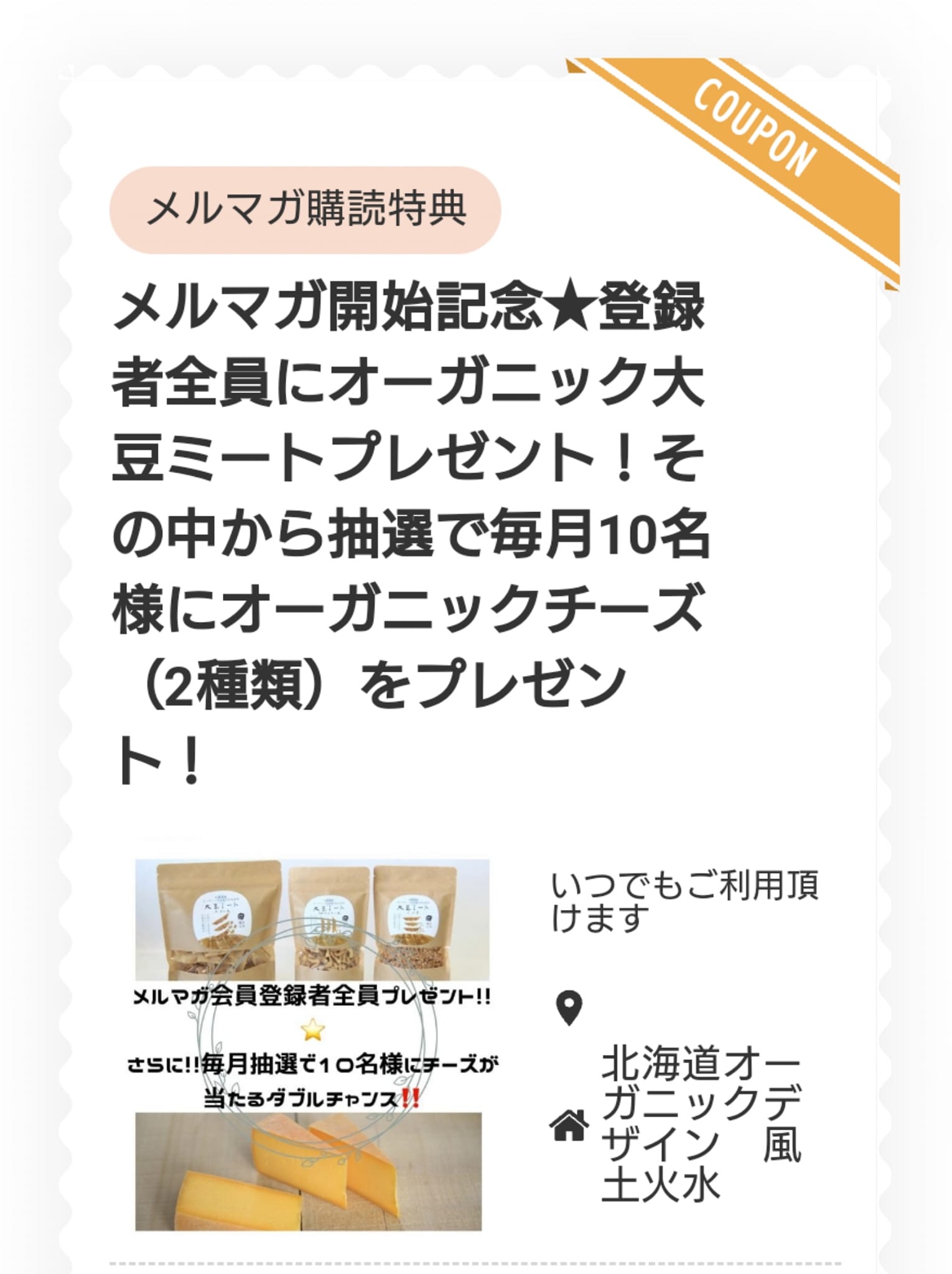 抽選で毎月10人に「オーガニックチーズ」が当たります♬