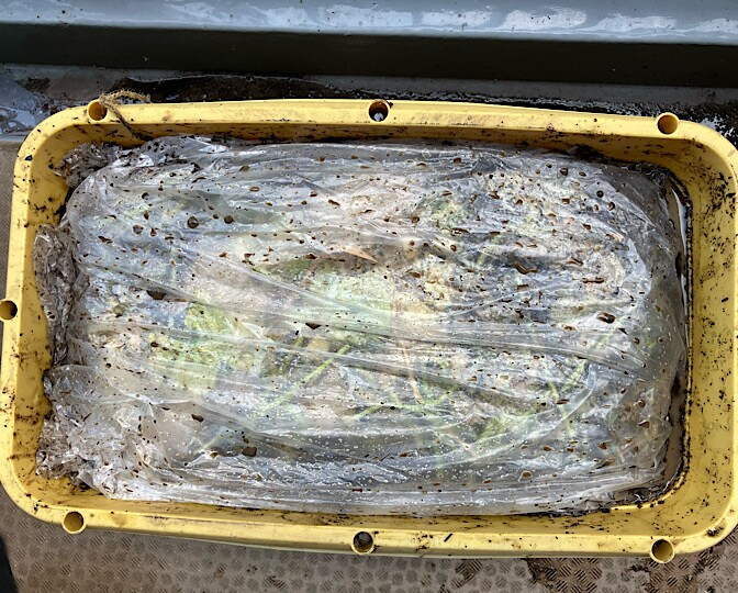 残渣は残渣で、ビニールに入れて、えひめaiと混ぜておいたのですが、こちらは見事に腐敗しました!