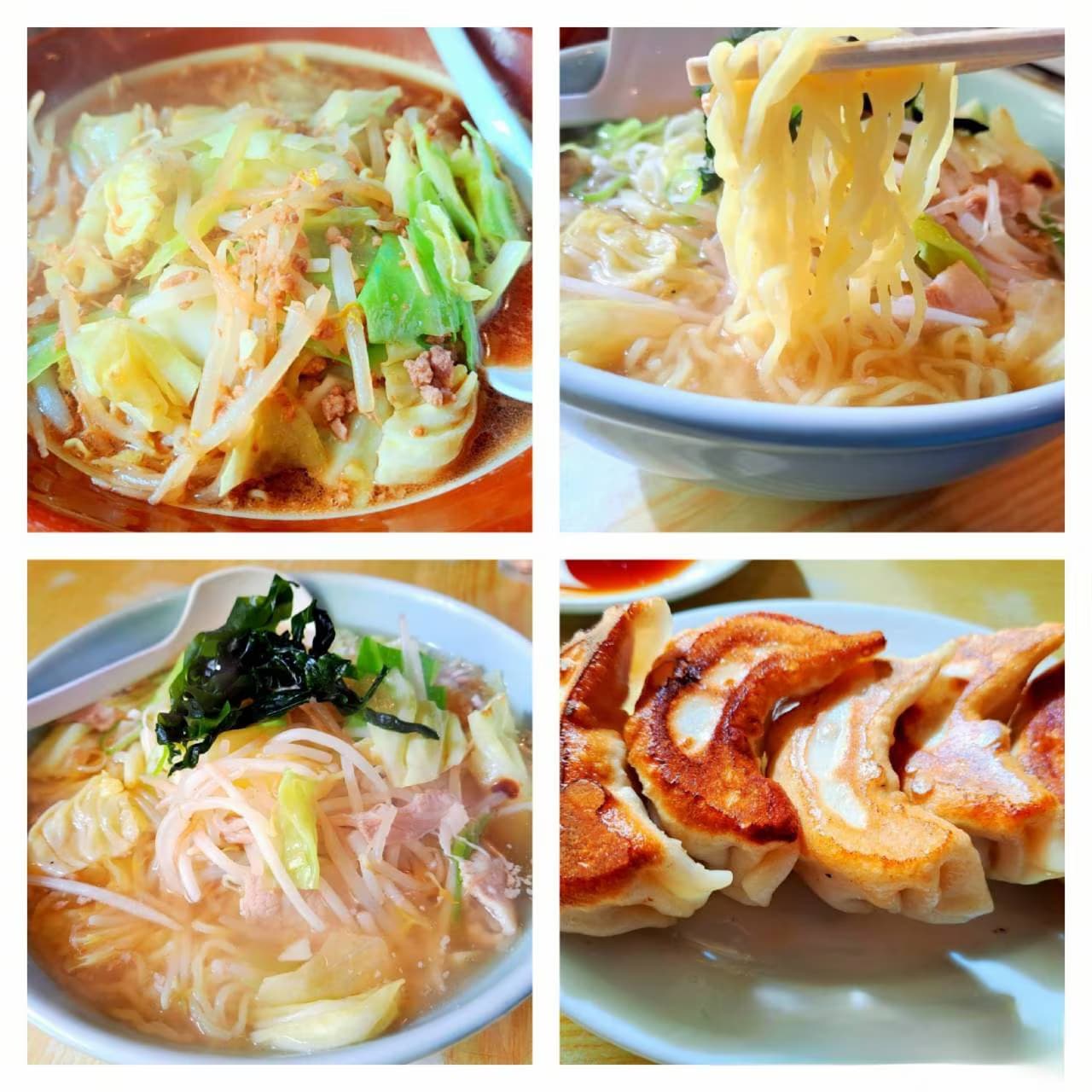 🔵塩ラーメンは、シャキシャキのたっぷりの野菜、ツルッとした細麺が、さっぱりした塩スープによく合い美味しいです✨😋(写真の右上と左下が味噌ラーメンです。)
