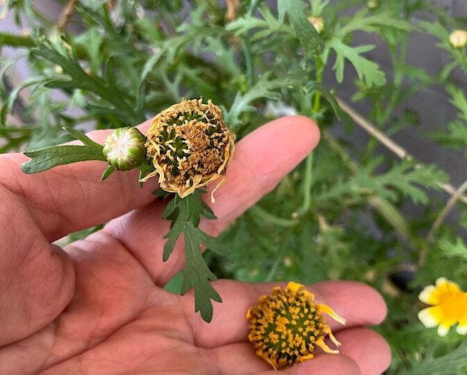 6月8日撮影、タネができ始めてるシュンギクも!!*\(^o^)/*