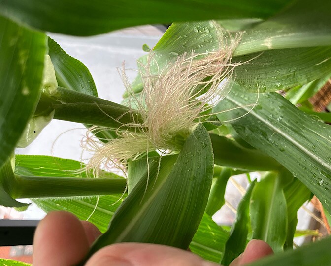 とうもろこしは他家受粉なので、最低でも10本ないと、うまく受粉できないそうです。