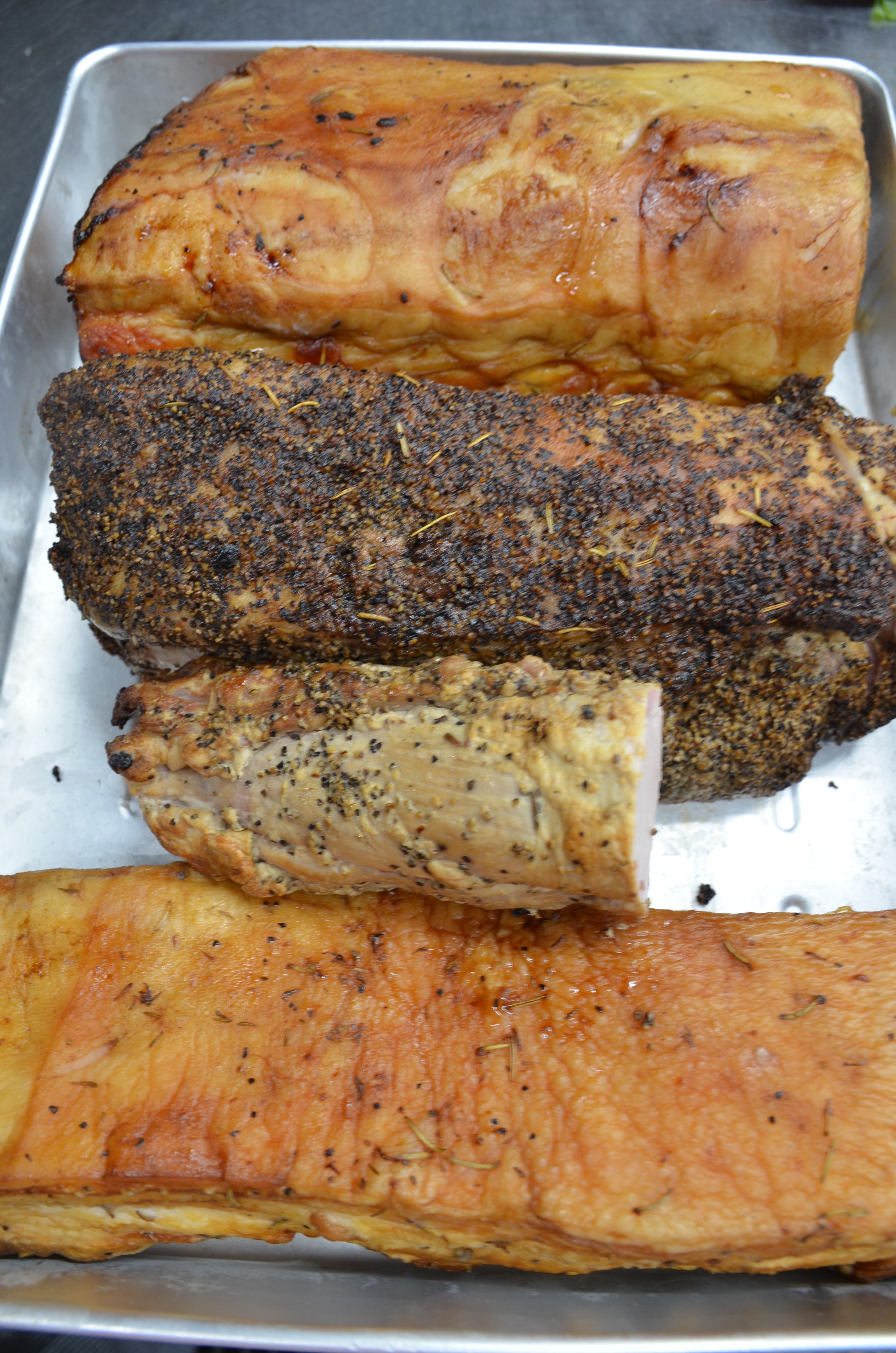 ② 吊るし焼きチャーシュー・・・・・・部位毎に塩胡椒と香辛料で漬け込み。