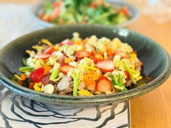 副菜は、香りのお水とオリーブオイルと塩、胡椒、お酢、マヨネーズで和えたら