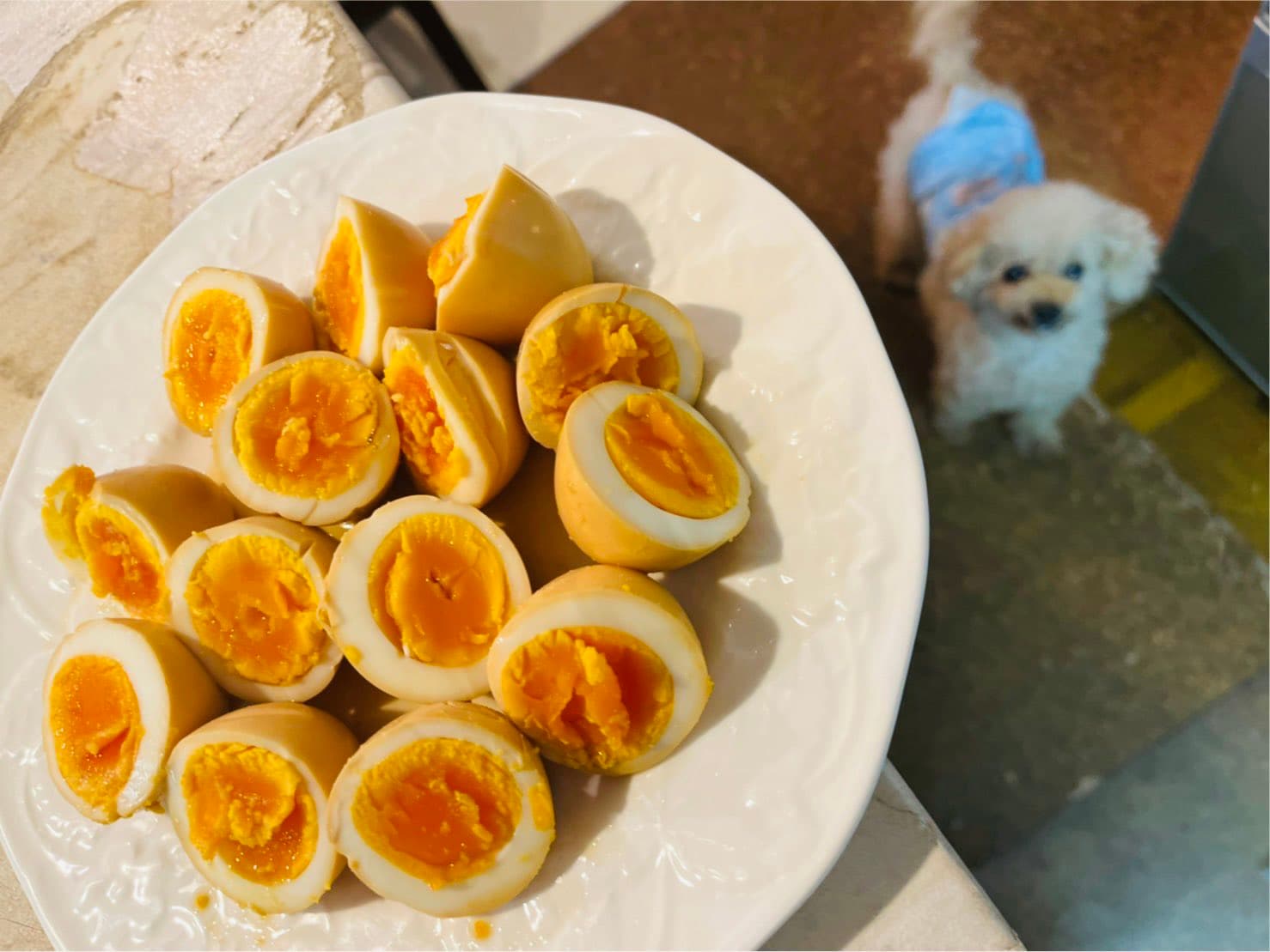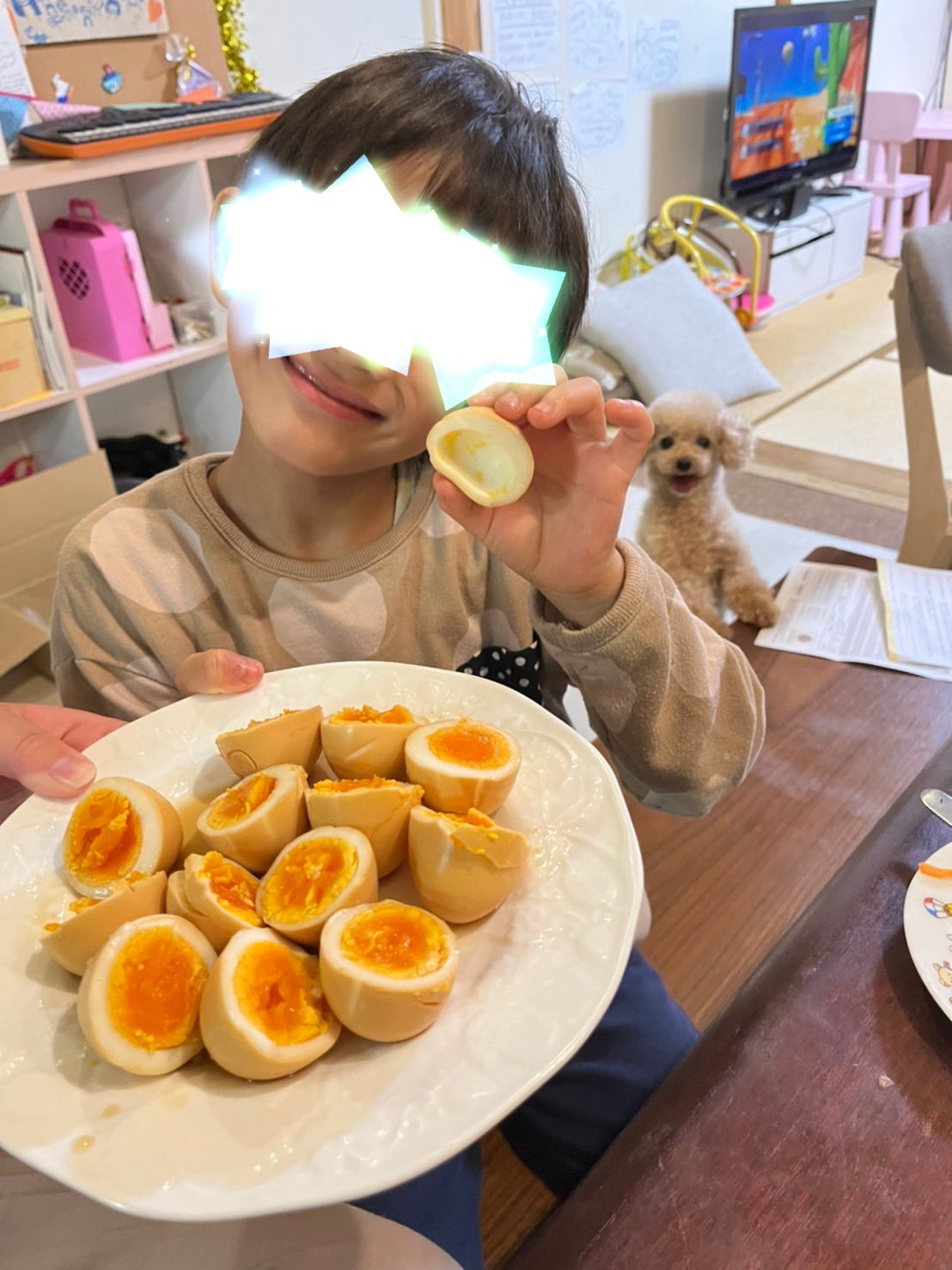 堪らない匂いに、プー太も燻製たまごを狙っていたとか。