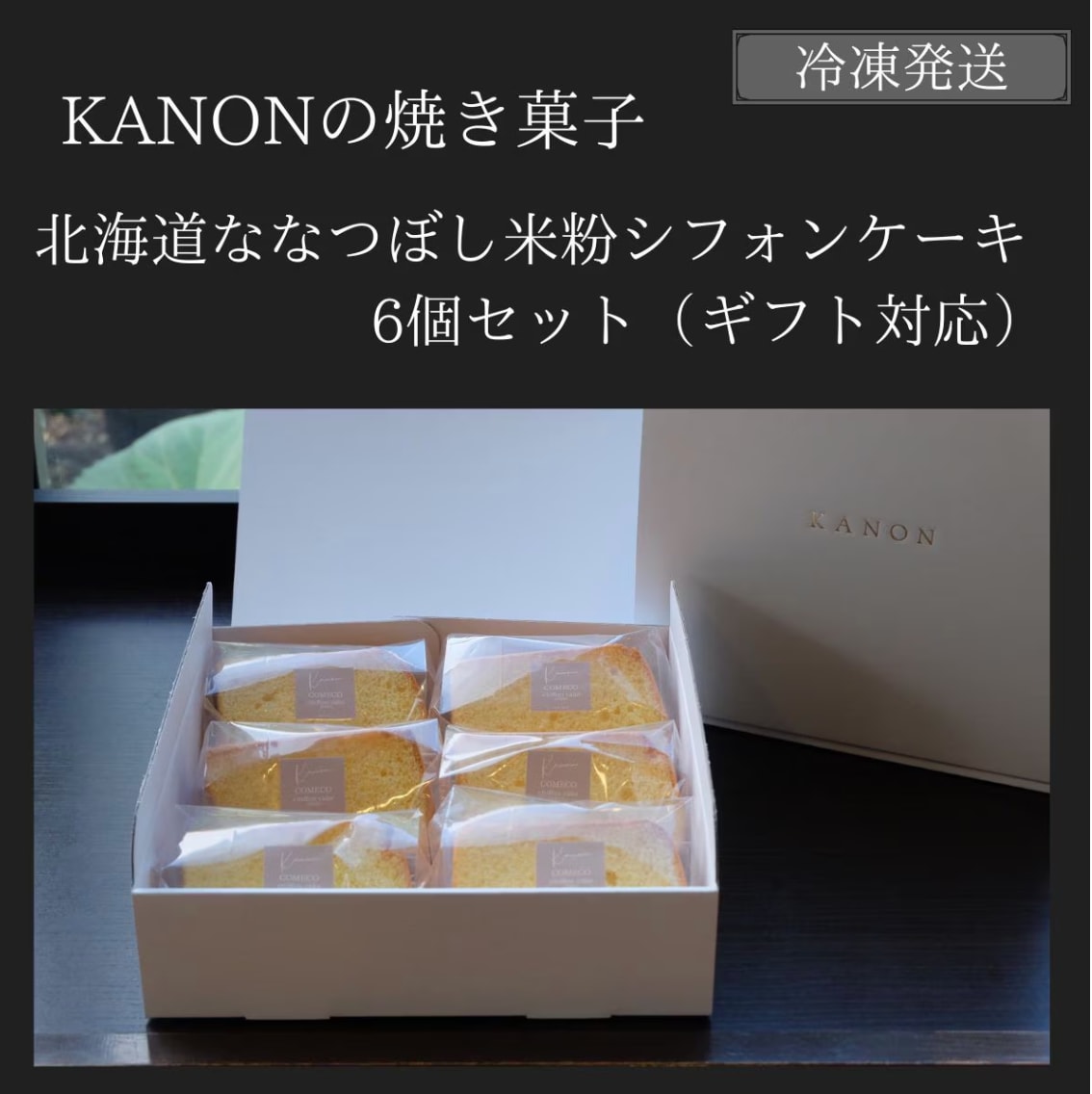 KANON手作りのバニラビーンズ入り北海道ななつぼし米粉100%のシフォンケーキです。