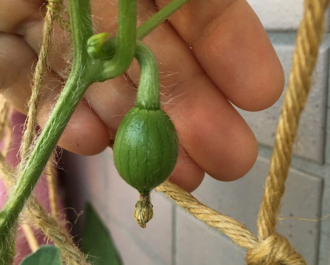 違う株に雄花がなかったので、同株の花粉を人工受粉しました。