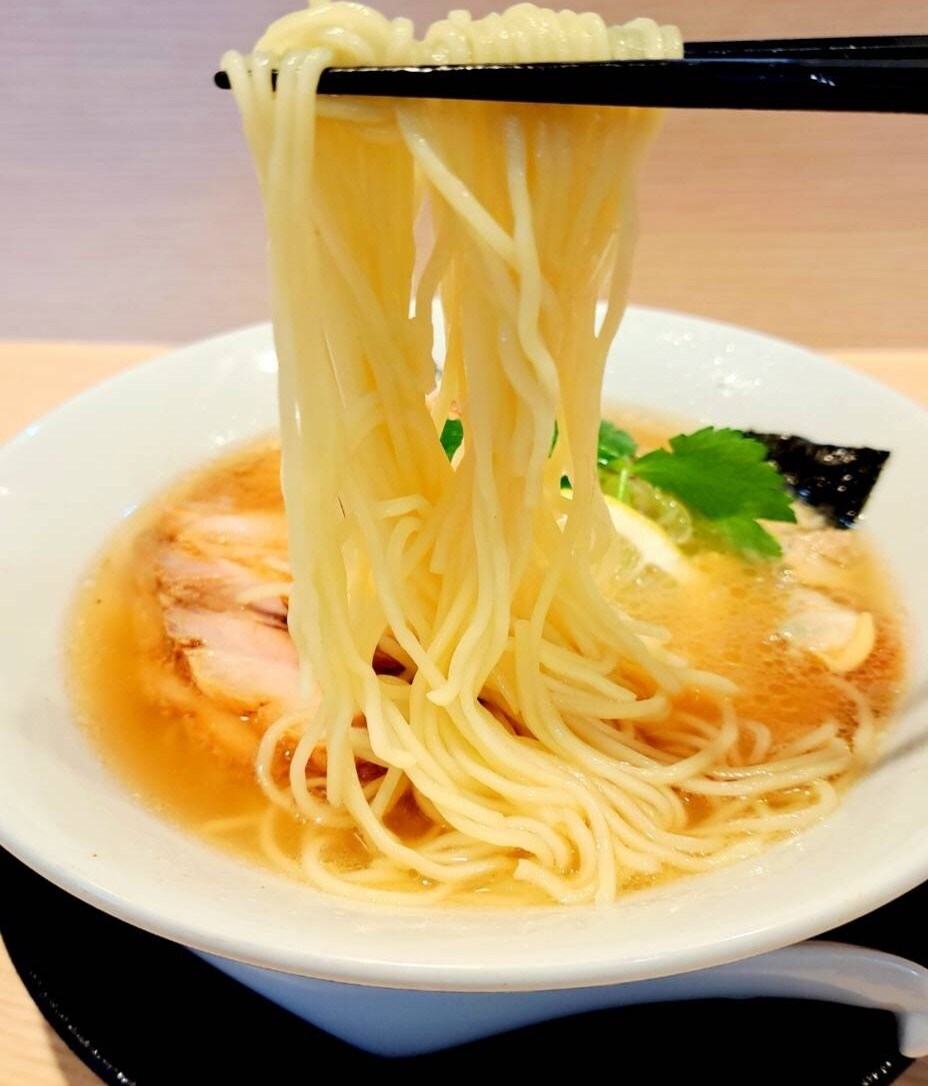 味の染みた柔らかいほろほろのチャーシュー、ツルッとした細麺が貝出汁をメインに鶏ガラ、豚骨を使用したスープに良く合い美味しいです✨