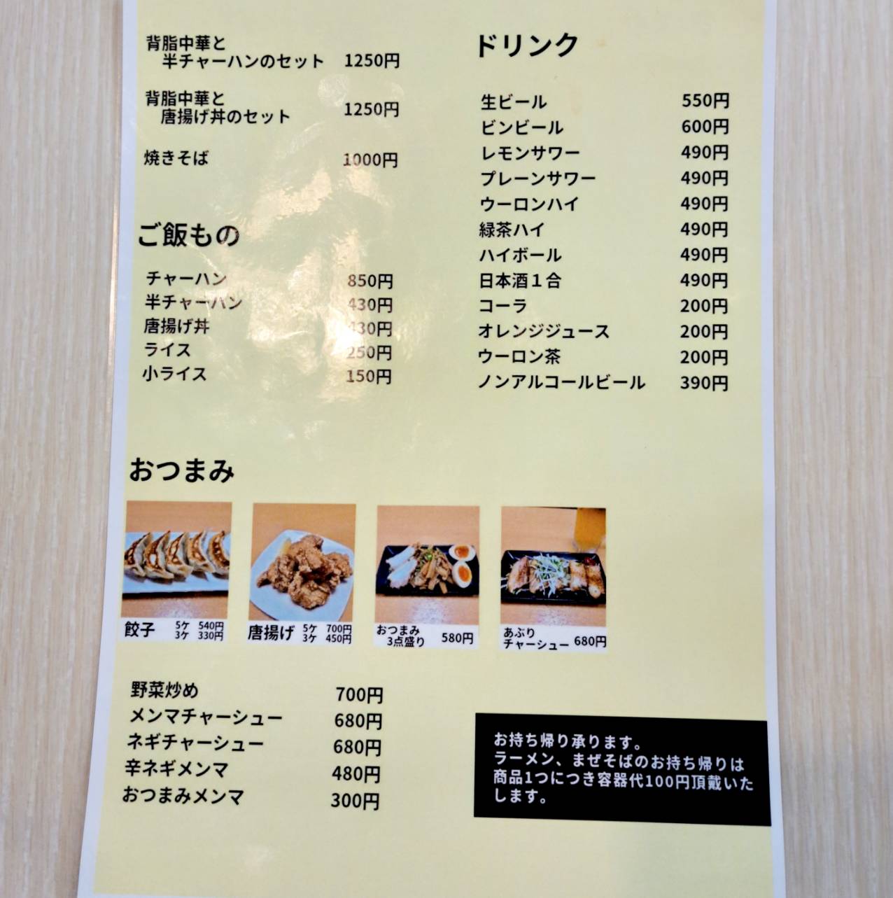 各種ラーメンの他に、ご飯物や餃子、唐揚げなどもありメニューは豊富です✨