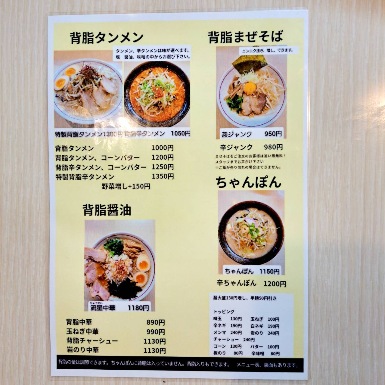 【らーめん流れ星】「燕背脂ラーメン」と「タンメン」が人気のお店✨
