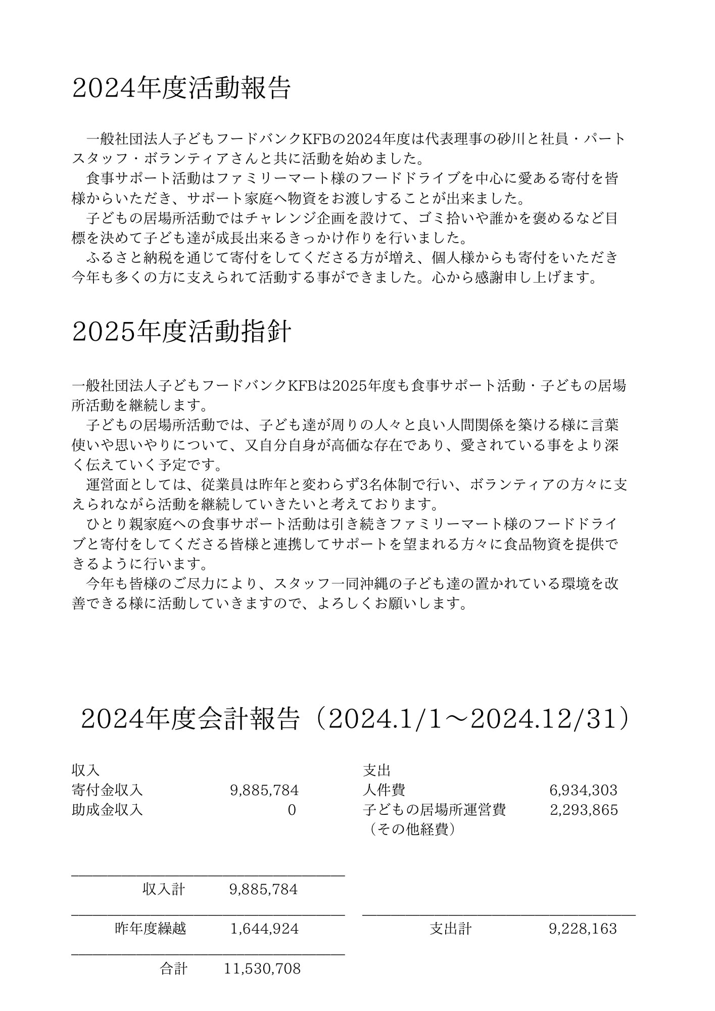 2024年度の会計報告をさせていただきます。