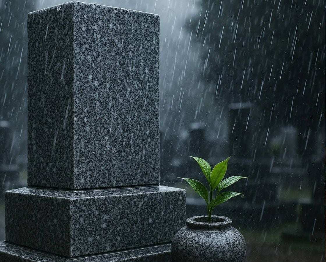 雨降り族が雨が降るまで踊るように、お墓の石は長い時間をかけて風雨に耐え、家族の想いを守り続けます。