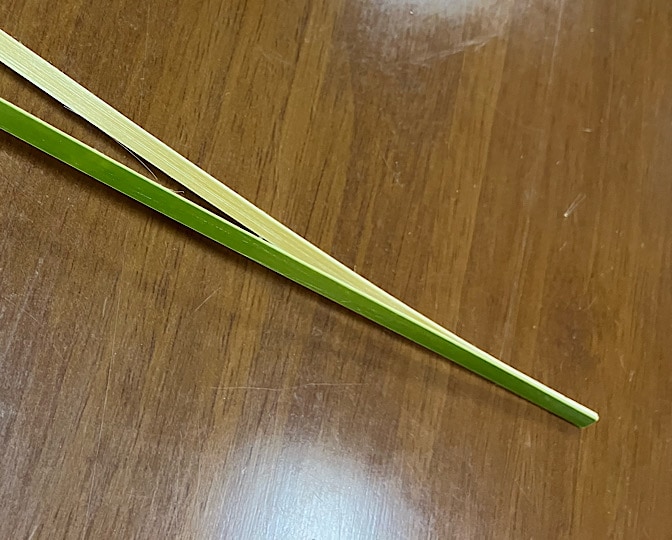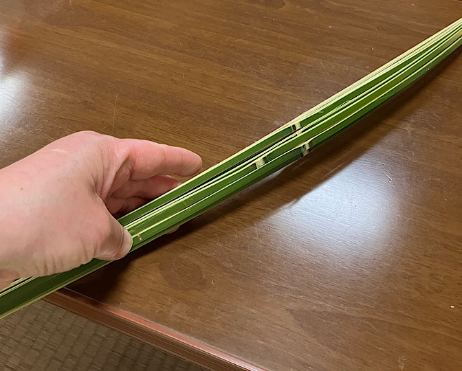 竹の皮をヘイ(剥い)で、それをまた半分にヘイであるんですが、片方の端がまだくっついてるんですよ!!