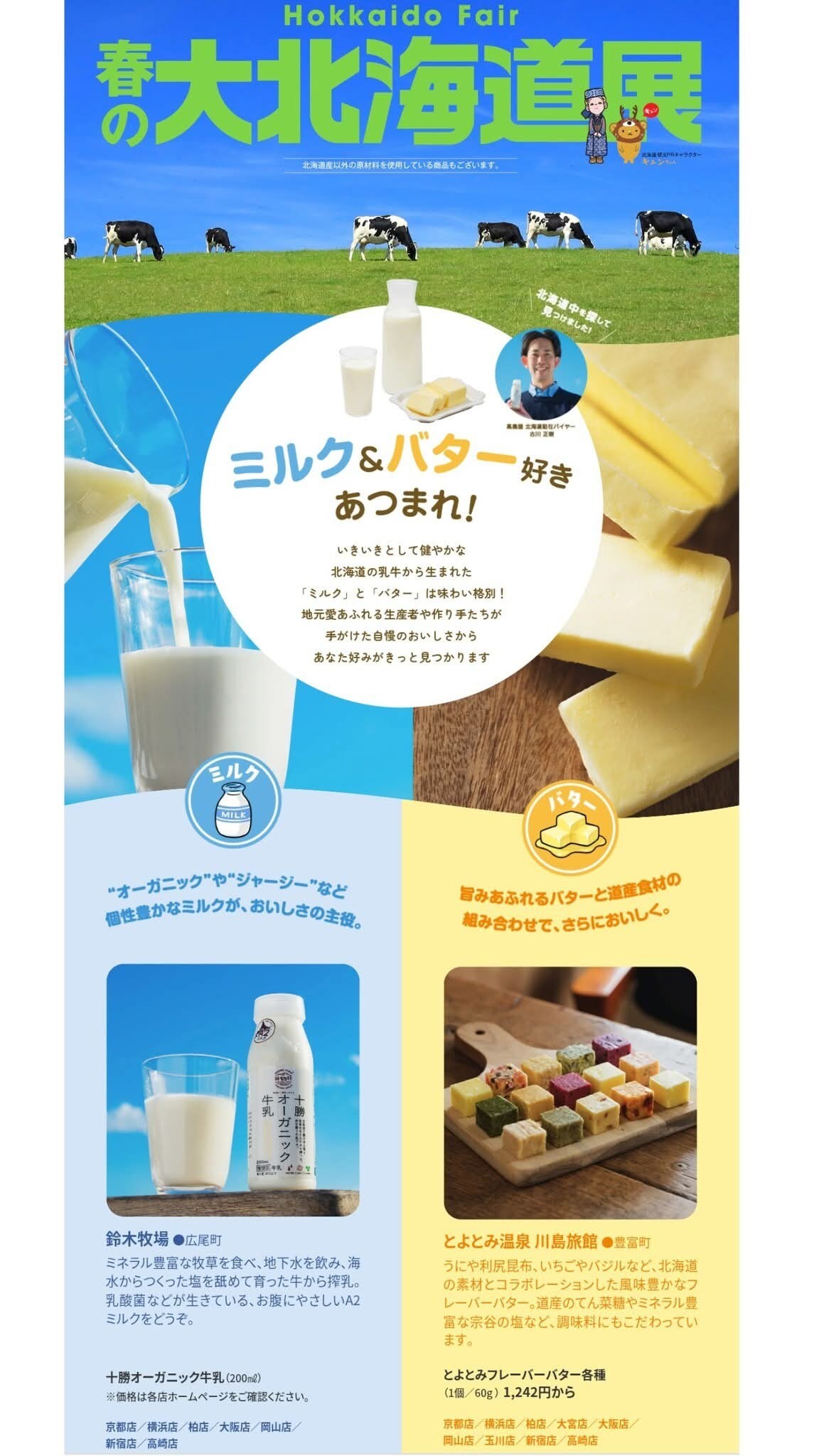 高島屋 春の大北海道展に十勝オーガニック牛乳が登場!