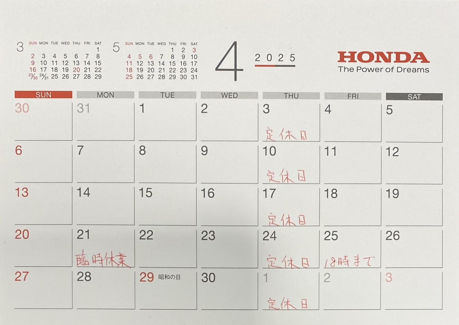 4月の営業日