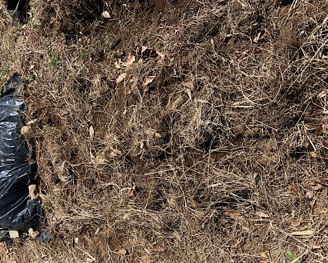 処理してなかった畝半分には、草マルチがしてあったので、一旦それを取り除いて、耕しまーす!