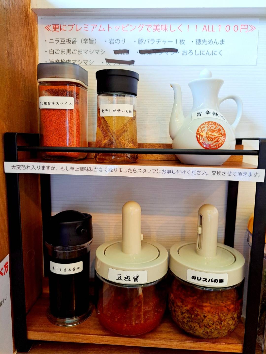 無料の10種類の調味料で自分好みの味にカスタマイズ可能です✨