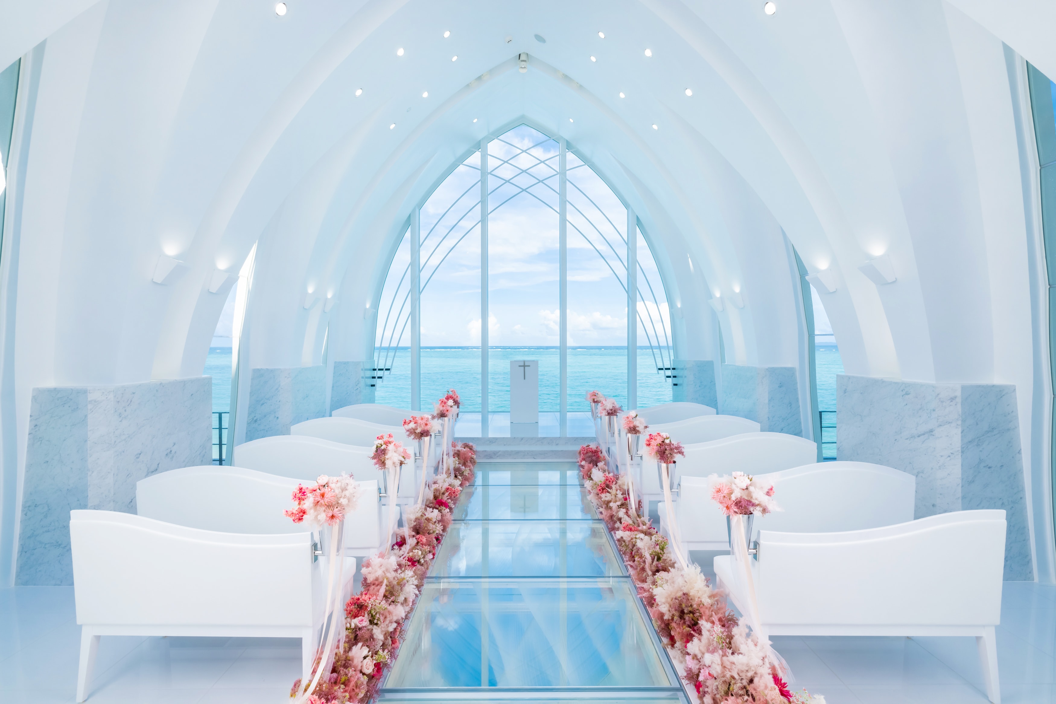 まるで海を貸し切ったかのような幻想的なチャペルです💐