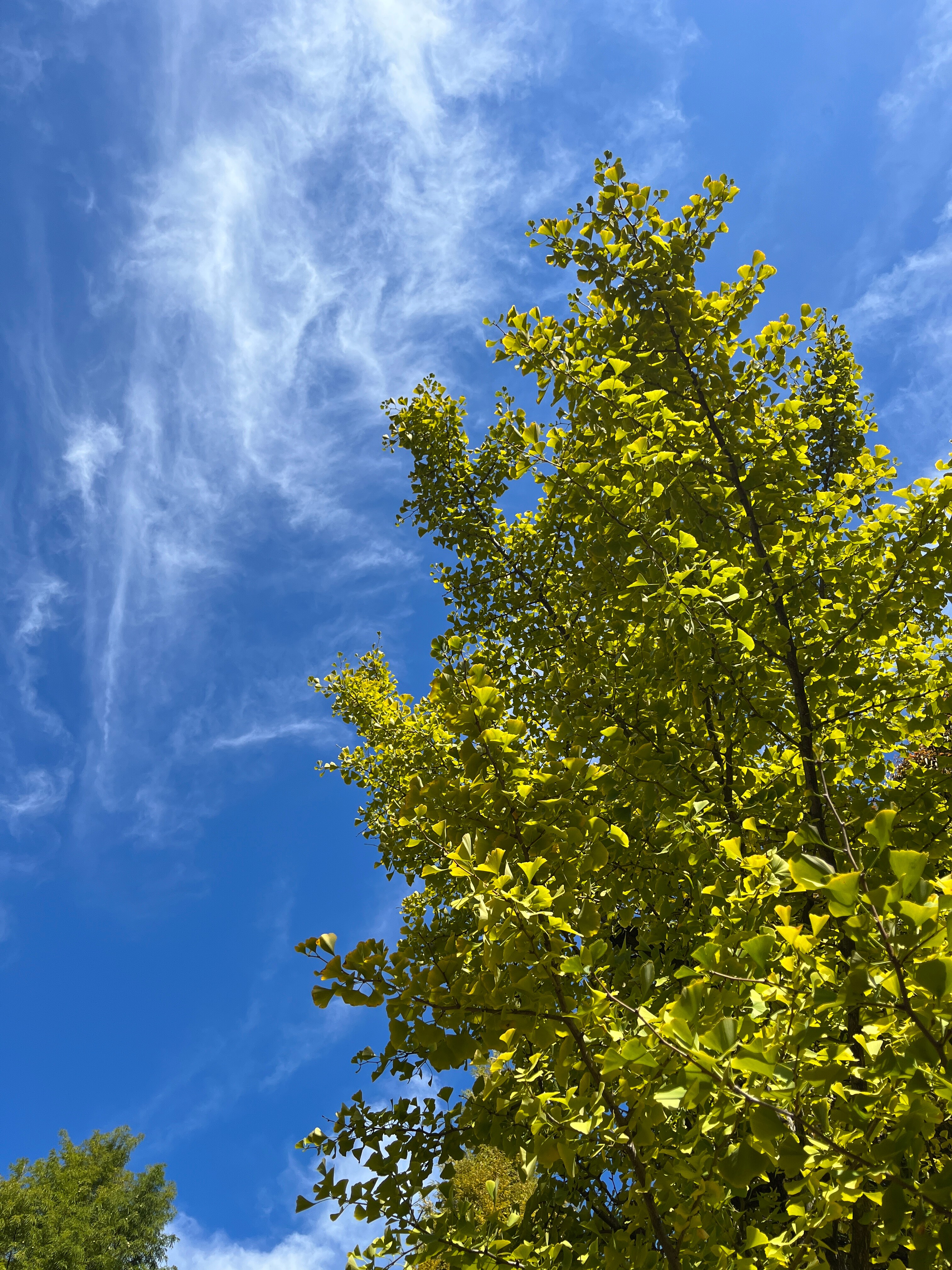 紅葉にはまだ早い銀杏。気持ちの良い青空が広がって、いつもの公園で過ごす休日。