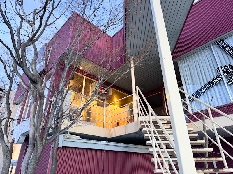 1階はラーメン屋さんで、ドロッピンさんは階段を上がった2階に入口があります。