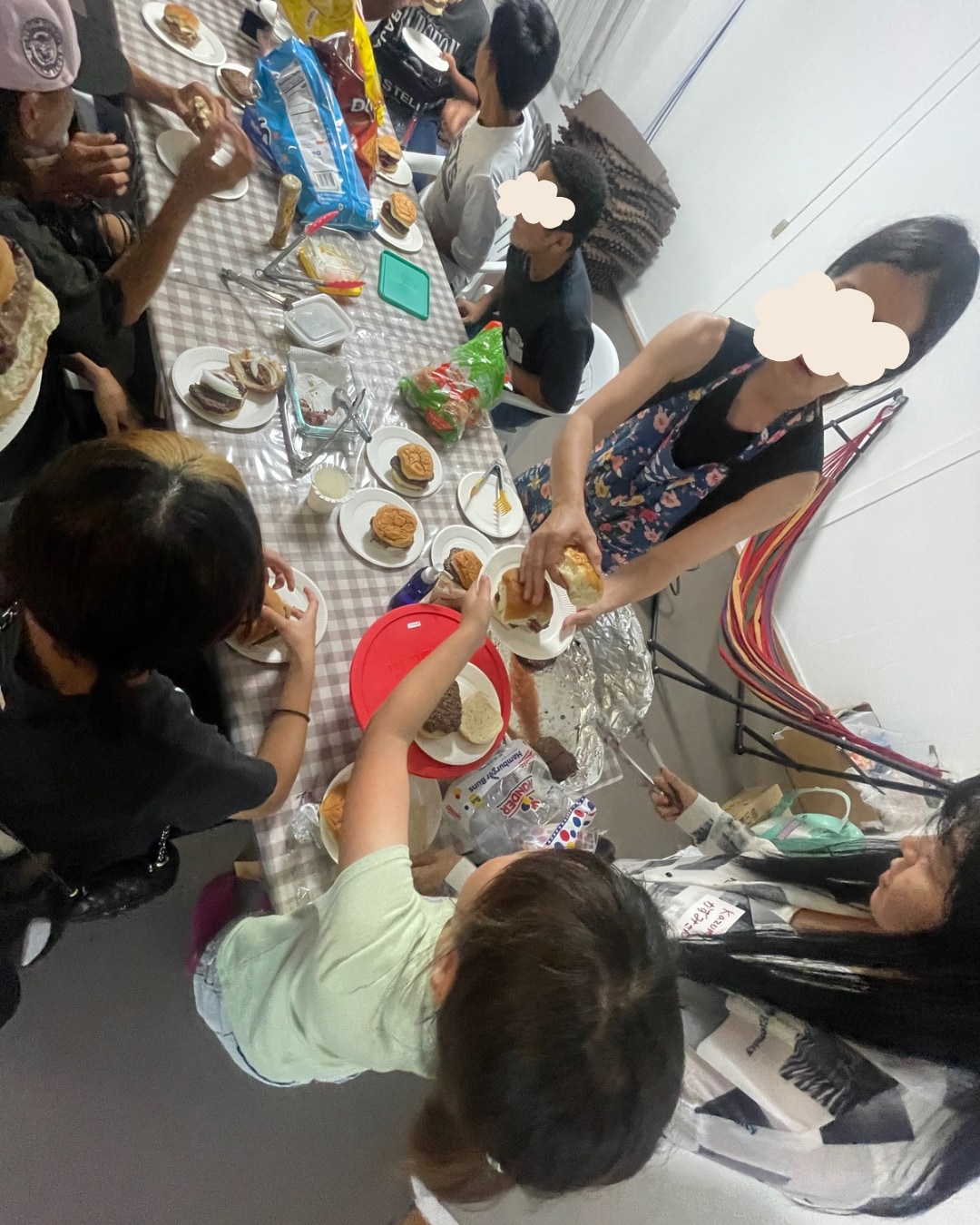 ボランティアさんご夫婦がBBQを企画してくださり美味しいバーガーとホットドッグをいただきました✨