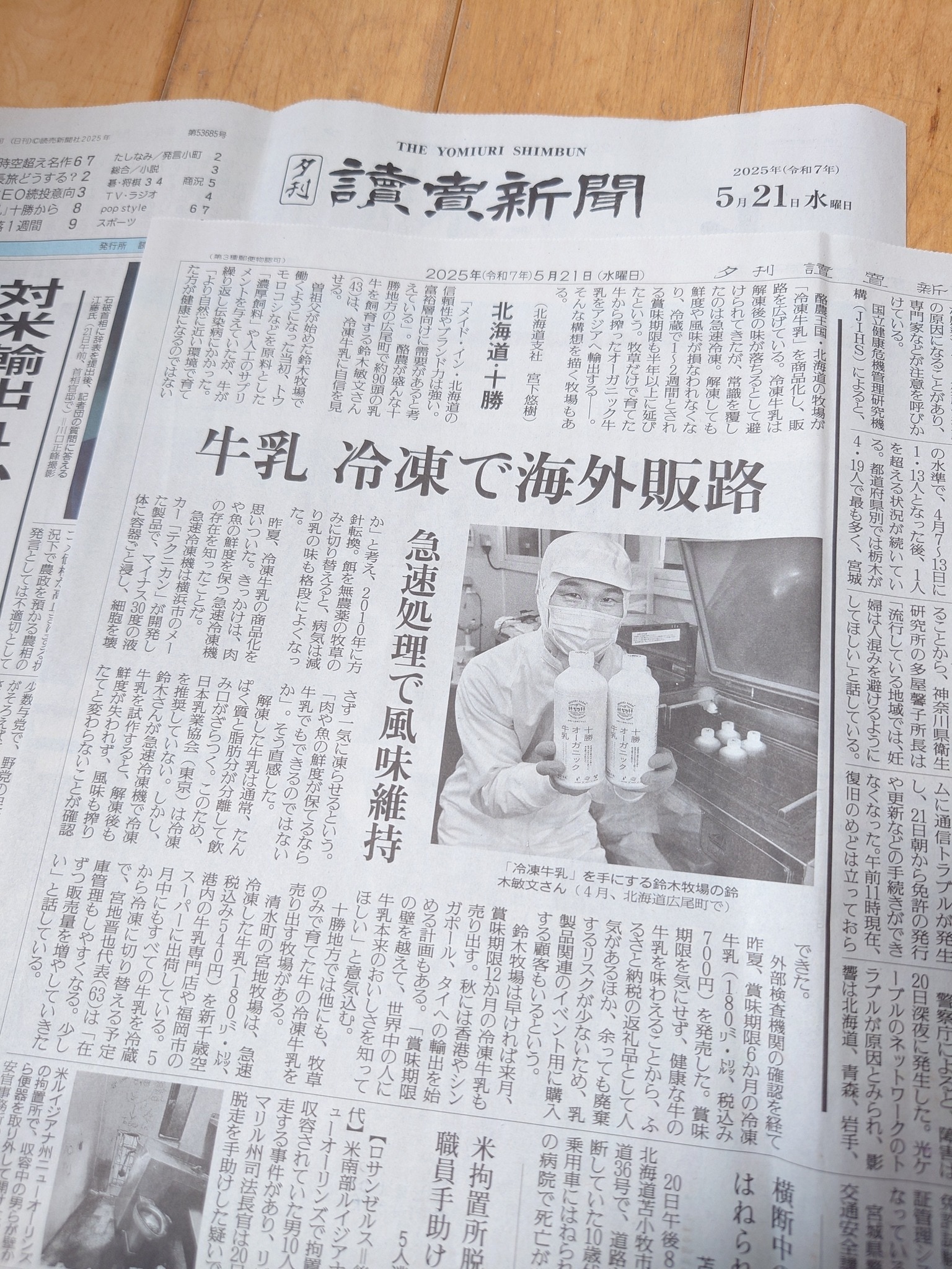 5/21㈮の読売新聞夕刊に冷凍オーガニック牛乳について取り上げていただきました。