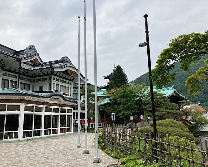 路地裏から再び表通り(1号線)へ出るべく、道を探したけど見つからず…、富士屋ホテルの中を通らせてもらうことにしました。