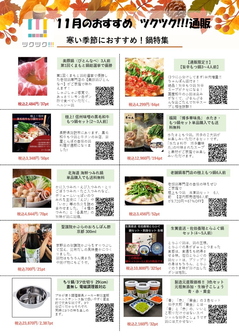 毎月恒例となりましたツクツクおすすめ商品チラシ
