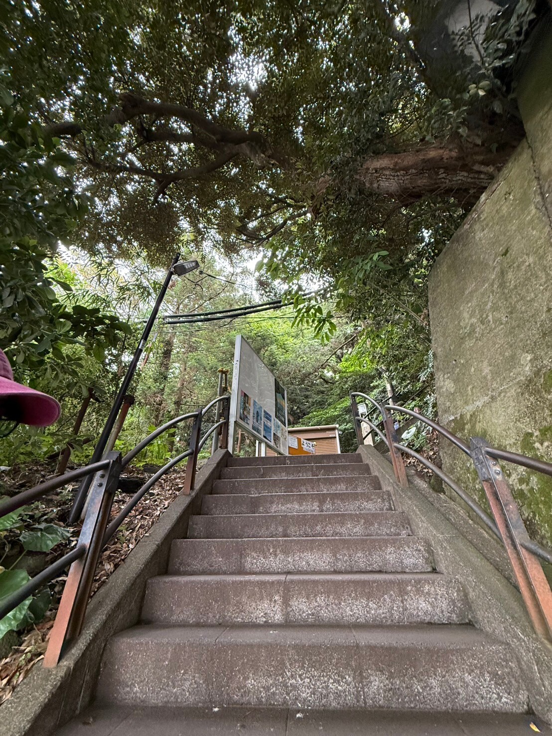 島の裏側から江ノ島神社の奥宮へ続く、緑豊かな長い階段を登りました。ひんやりとした森の空気と鳥のさえずりが心地よく、思わず深呼吸をしてしまいました!