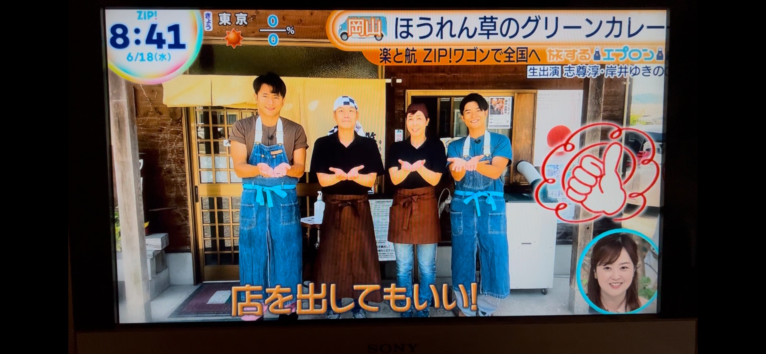 ちなみに、撮影の最後は、店の前で、お馴染みのZIPポーズて終了。