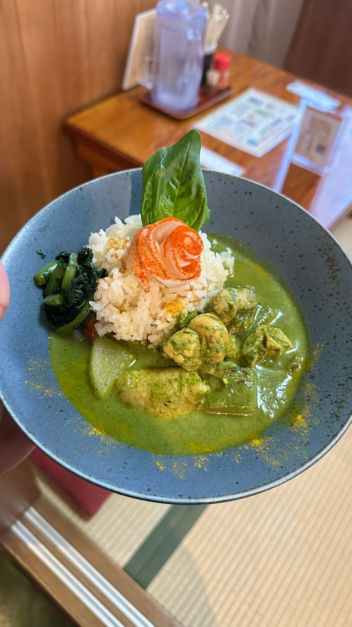 大根、牛乳という蒜山の特産品を使い、グリーンカレーで高原をイメージするとは、想像の遥か上をゆく料理でした!