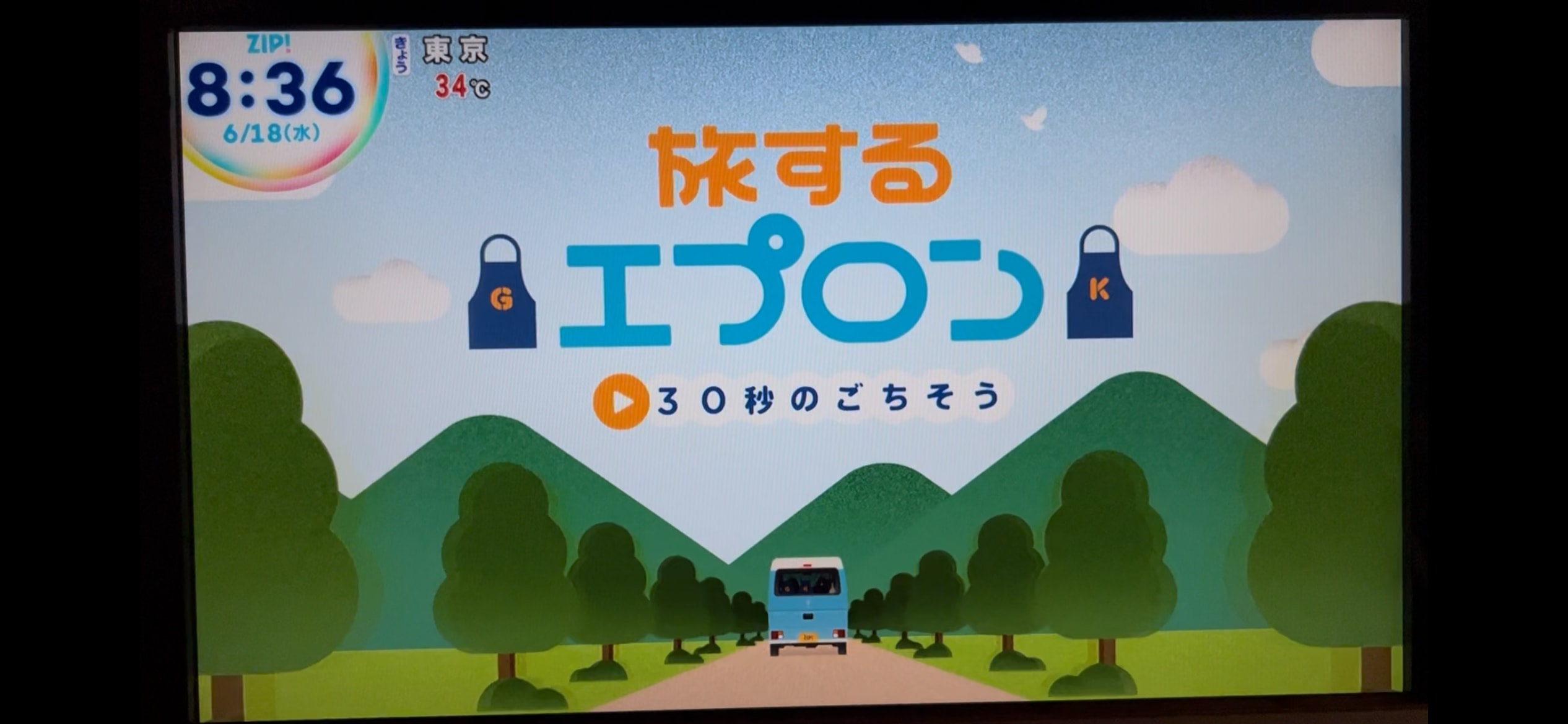 6月18日(水)の朝放送されたZIP!「旅するエプロン 30秒のごちそう」に悠悠が出ました。
