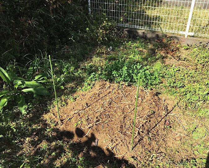 前回、くん炭やら堆肥やらいろいろ混ぜ込んだので、根切りはしなくて良いかな〜と、鎌は持って行きませんでした。